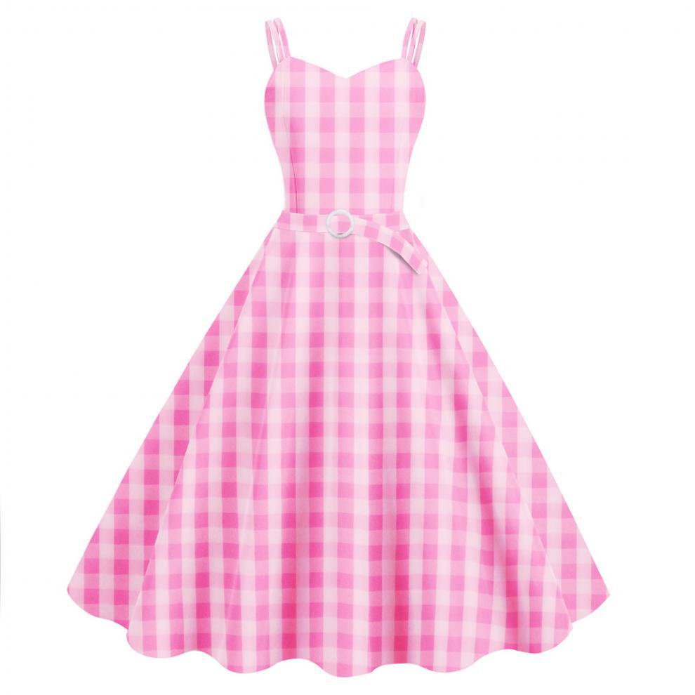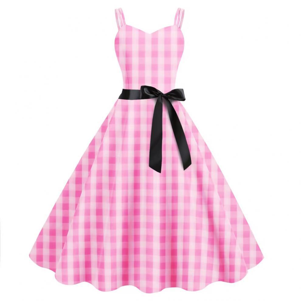 Vestido sexy de Barbie con estampado a cuadros rosa, superventas transfronterizo de Amazon 2023