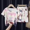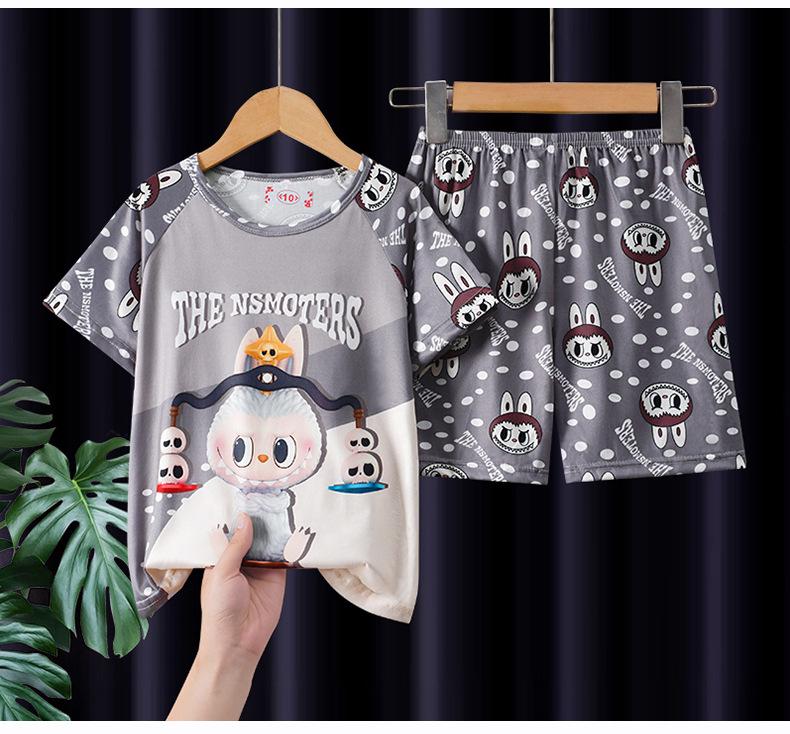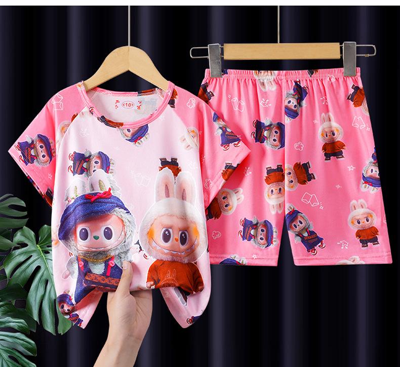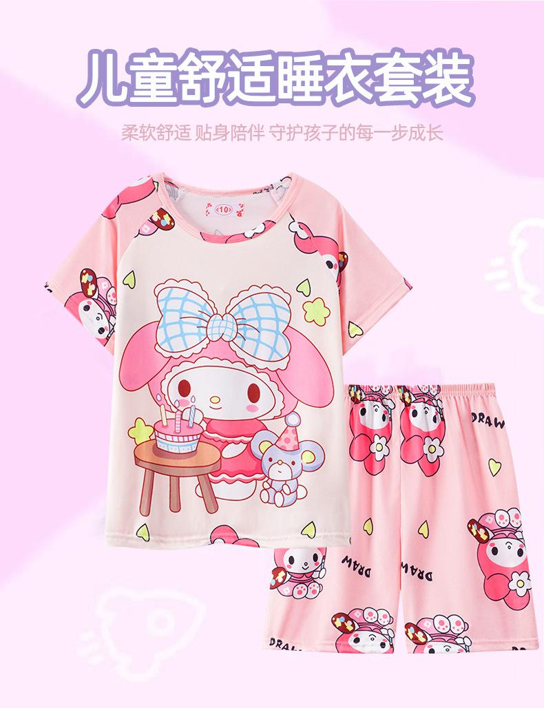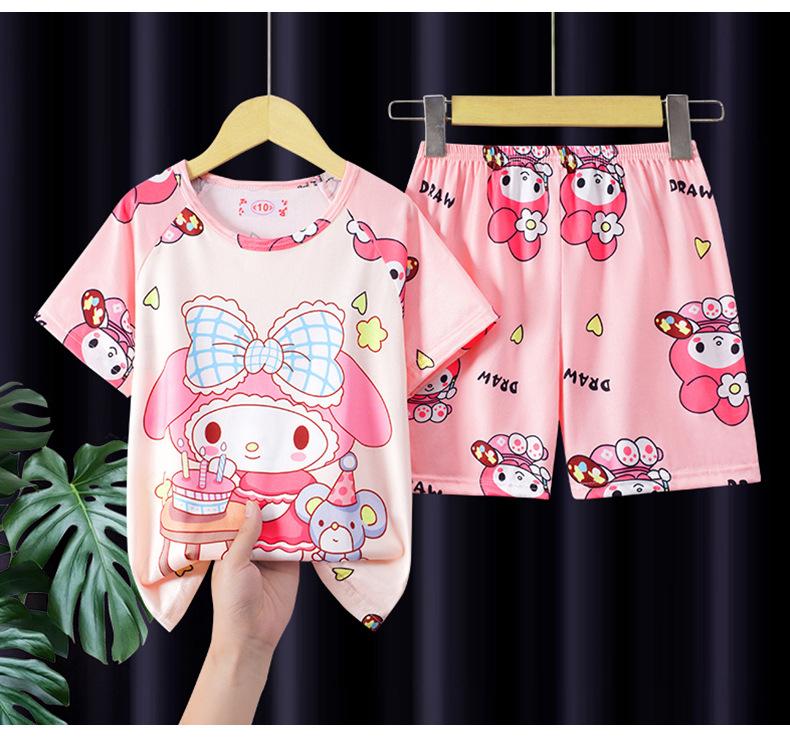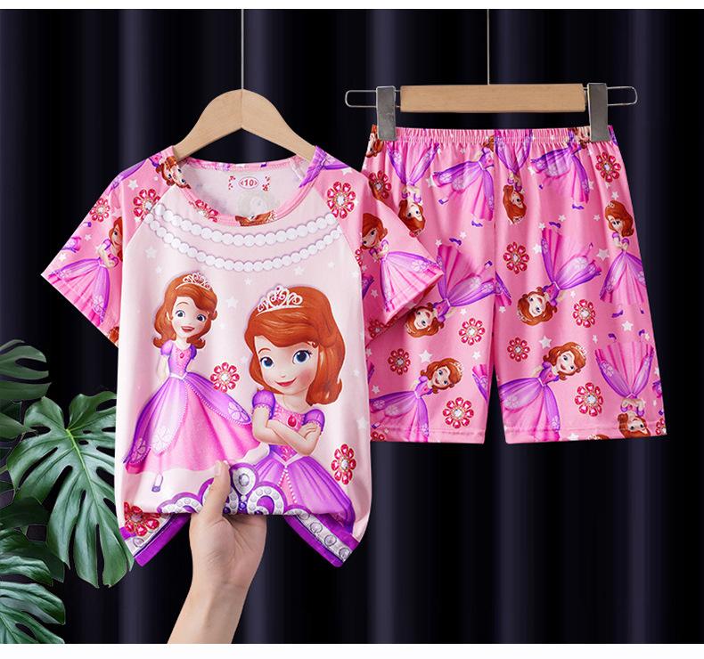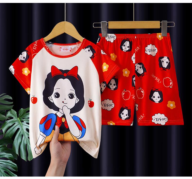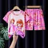 Pijamas de verano para niñas, novedad de 2025, finos, de manga corta, para niños y niñas, estilo princesa, ropa de casa con dibujos animados.