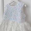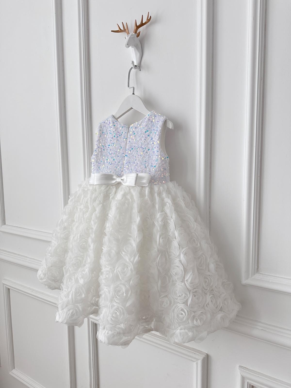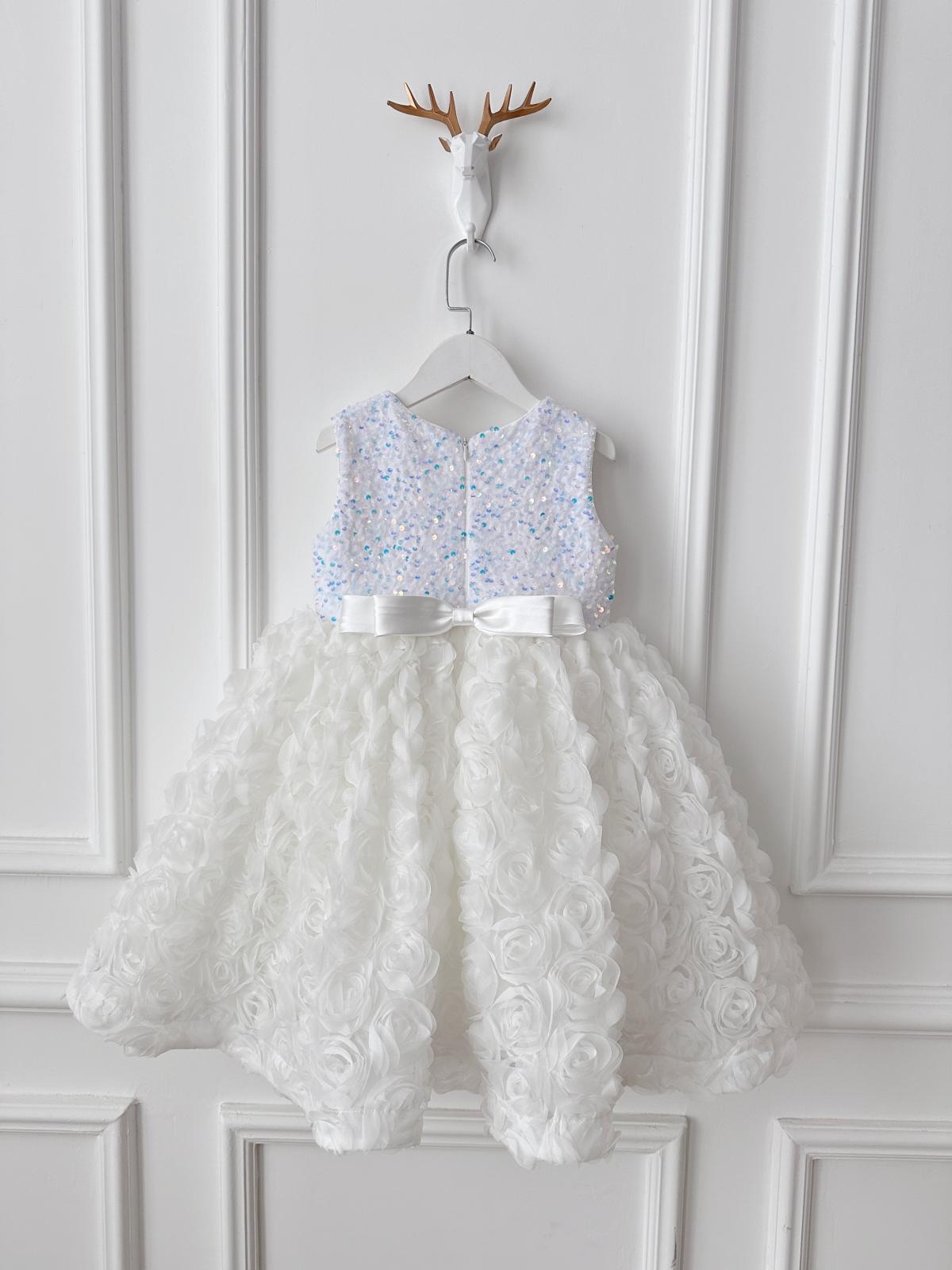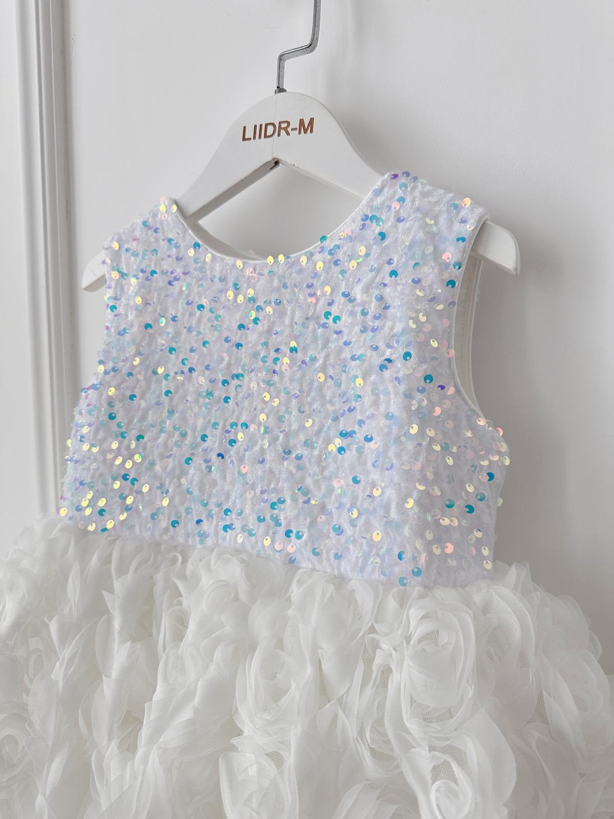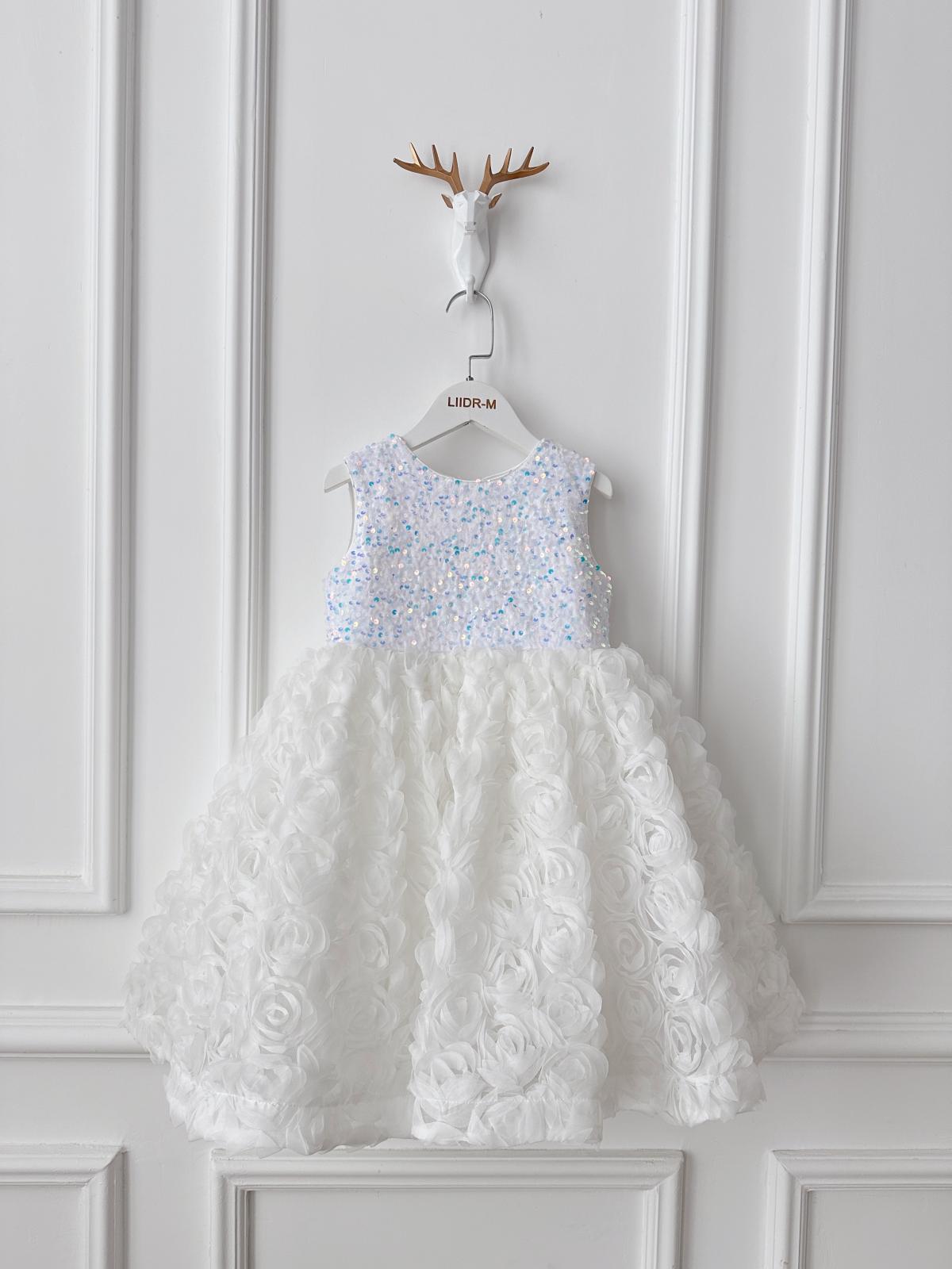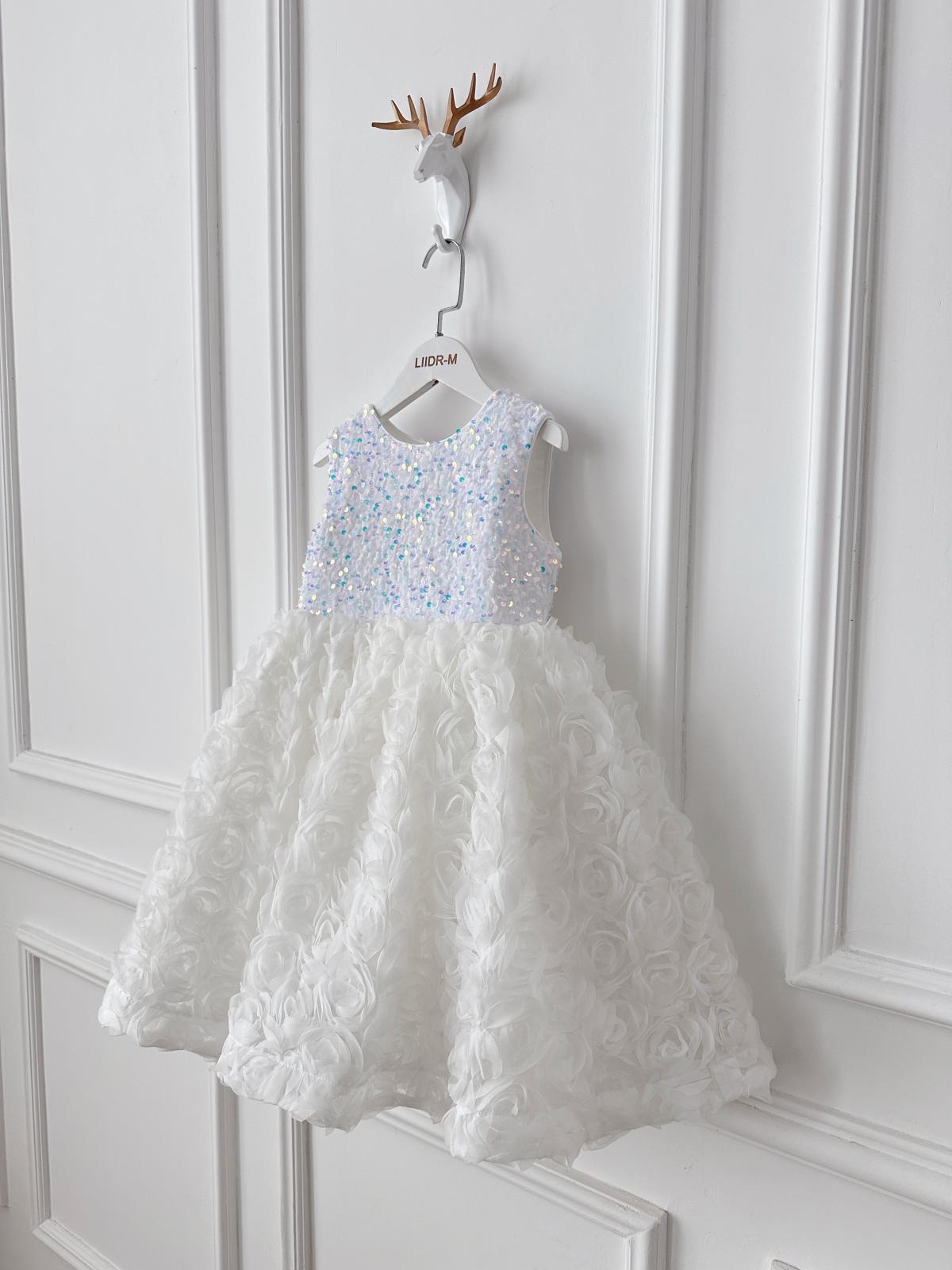 Vestido de princesa para niñas 2025, nuevo vestido blanco con lentejuelas y flores tridimensionales, ideal para cumpleaños, día a día.