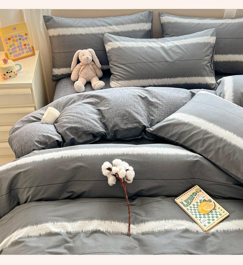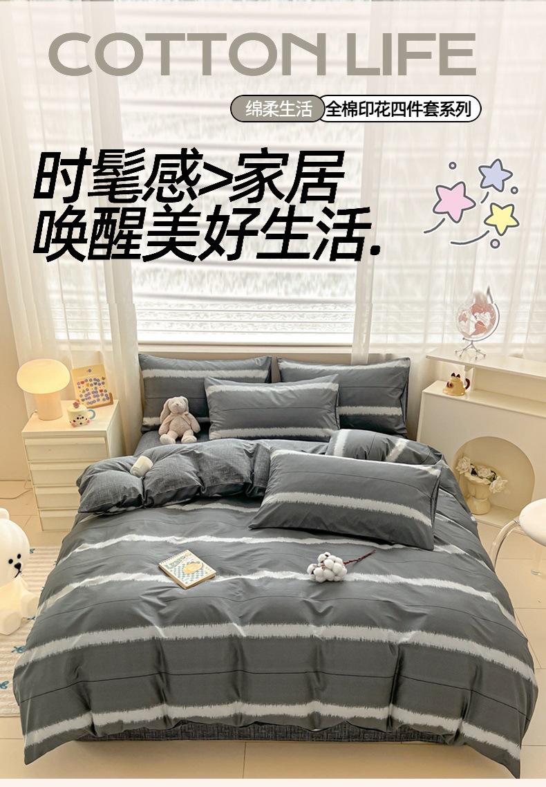 Sábana y funda de edredón de cuatro piezas, 100% algodón, para dormitorio de estudiantes, nueva colección 2025.