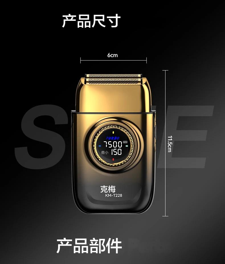 Afeitadora eléctrica KEMEI Gradient KM-T228 con pantalla LCD LED antimetal, afeitadora reciprocante para hombres