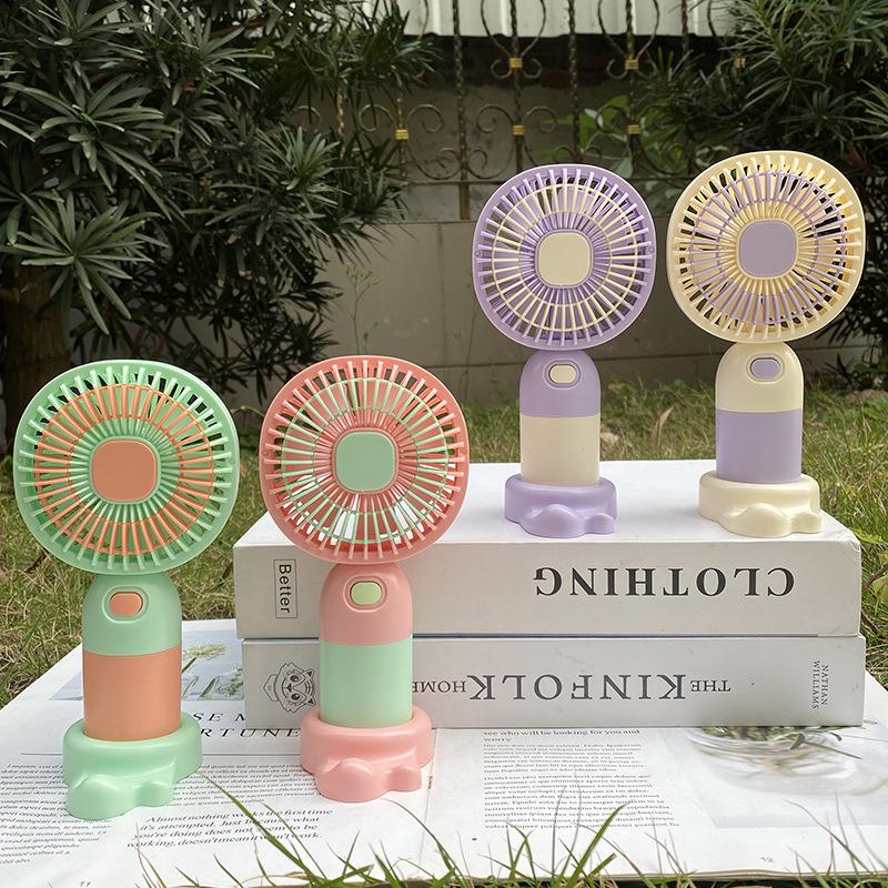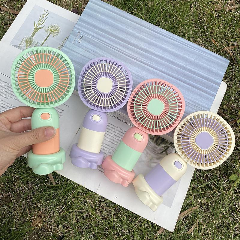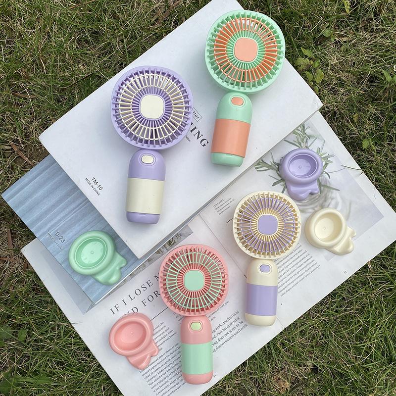 Ventilador pequeño de mano de escritorio portátil para exteriores, recargable, de color contrastante, pequeño, fresco, mini, USB, regalo