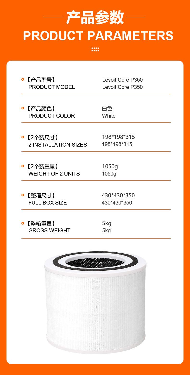 Adecuado para Elemento de Filtro Purificador de Aire Levoit Core P350/P350-Rf Filtro Hepa de Alta Eficiencia H13