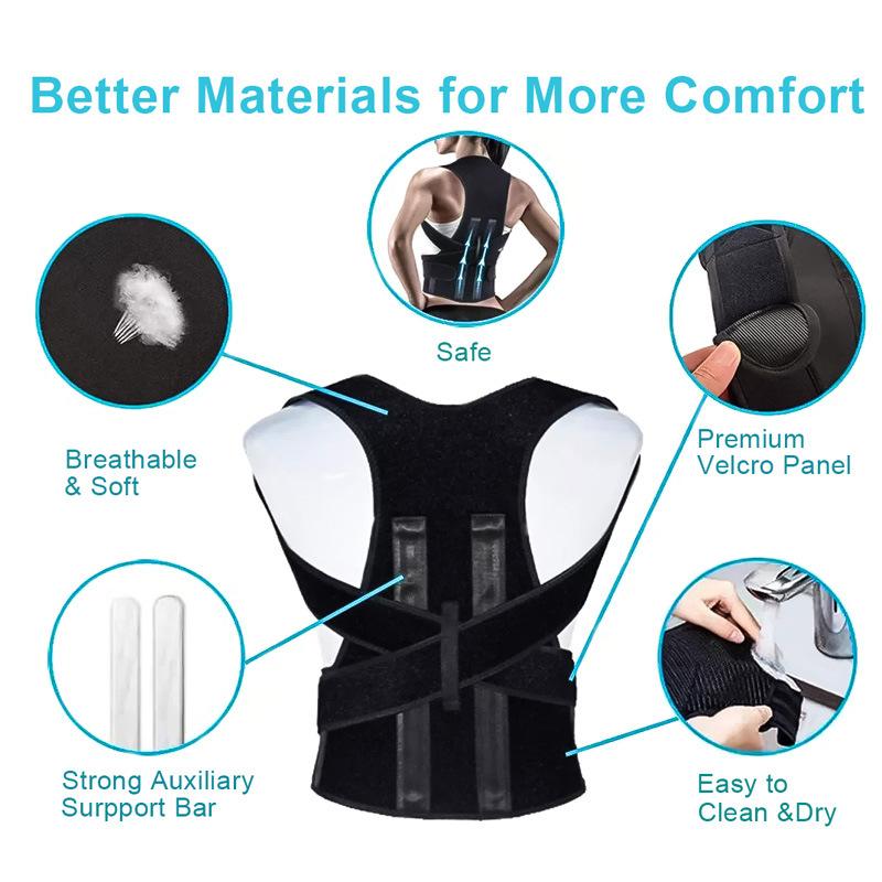 Características: Nuestro corrector de postura de espalda tiene dos soportes en la espalda, que brindan un fuerte soporte para la parte baja de la espalda y la cintura, y estabilizan y apoyan sus hombros, pecho y espalda. Lleve sus músculos y columna vertebral de vuelta a la alineación original para mejorar la postura. Lo mantiene alejado de encorvarse y tener una apariencia jorobada, mientras desarrolla gradualmente el hábito de una buena postura y mejora la confianza en sí mismo.