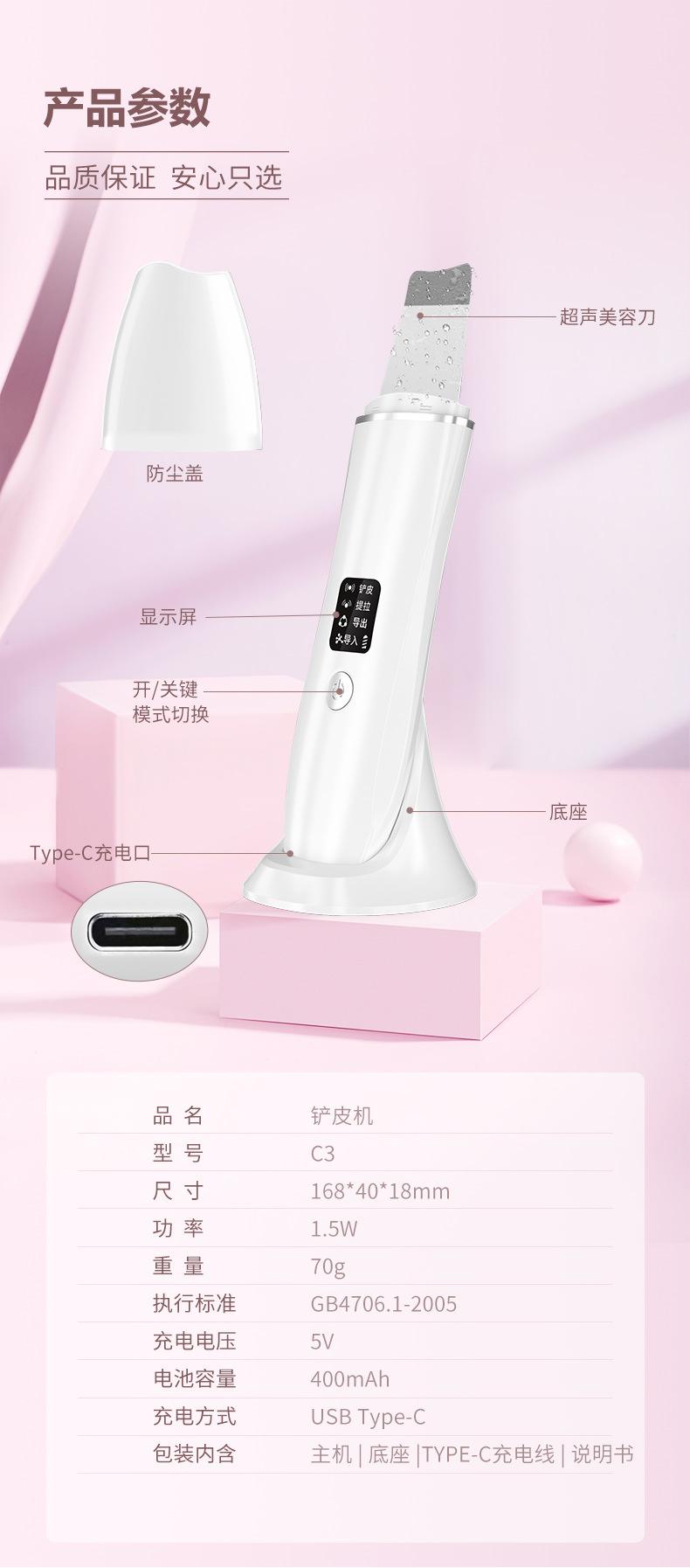 C3 máquina de peeling ultrasónico base EMS anión positivo exportación de puntos negros importación de mascarilla lifting reafirmante limpieza
