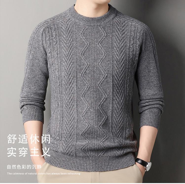 Suéter de Cachemira para Hombre Top de Cuello Alto Nuevo 2024 Camiseta Base Jóvenes y Mediana Edad Lana Marca Invierno Engrosado