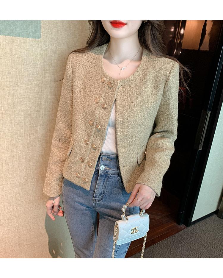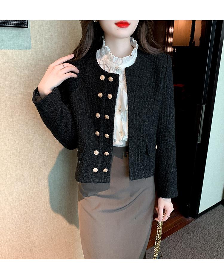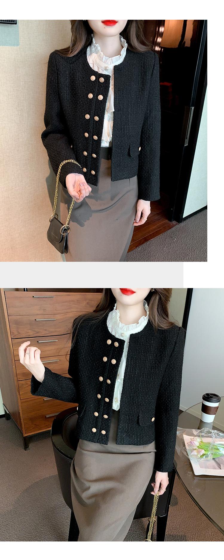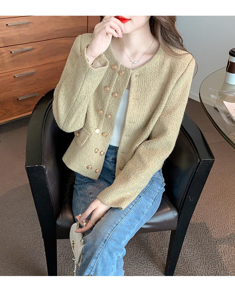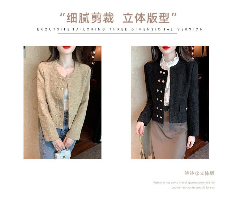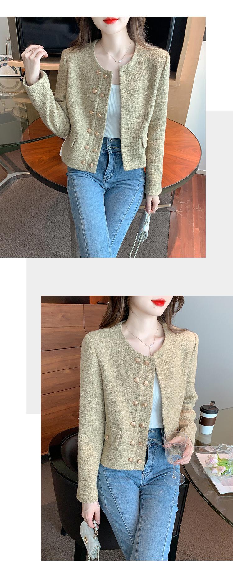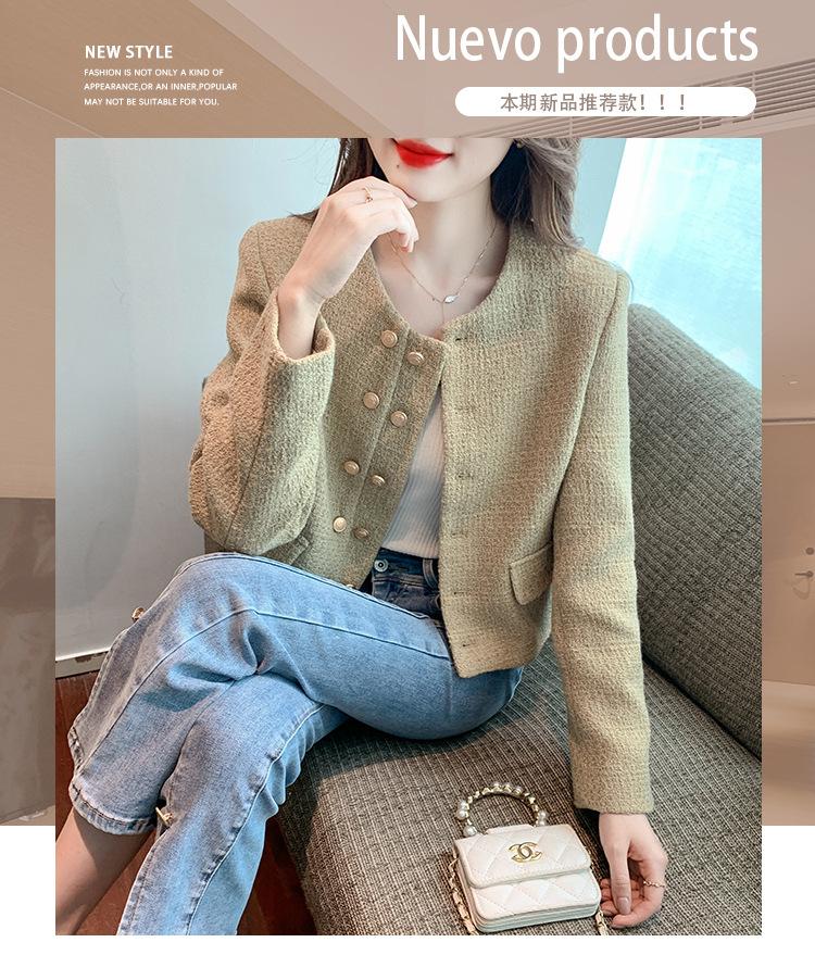 Chaqueta Corta Estilo Tweed para Mujer 2025 Otoño Nuevo Diseño Doble Botonadura Top Moderno y Versátil