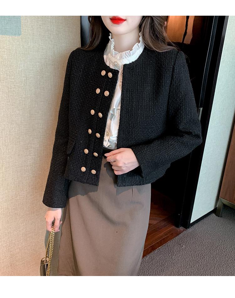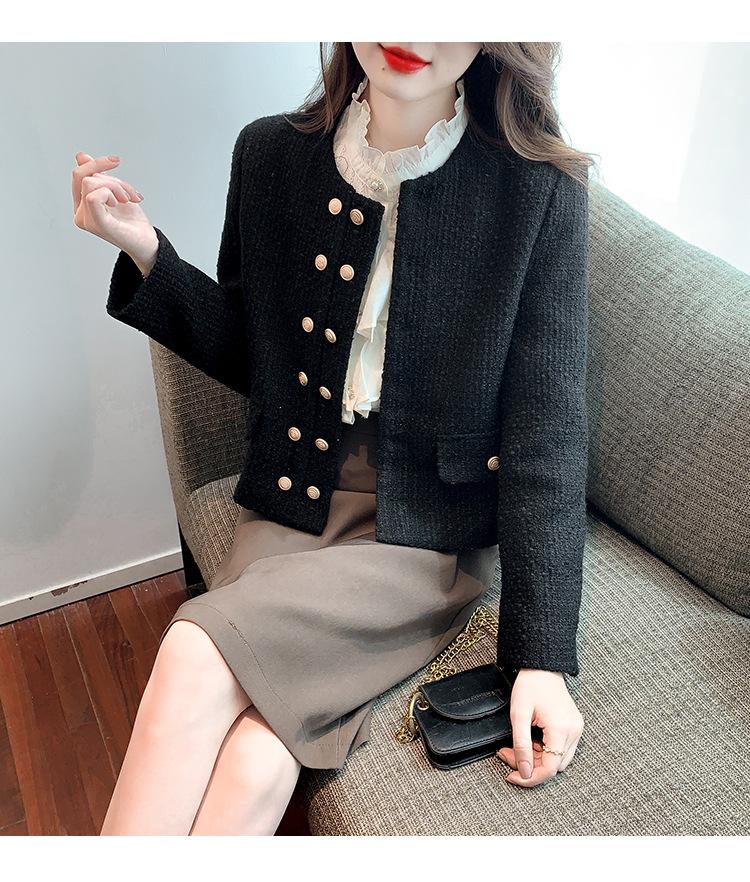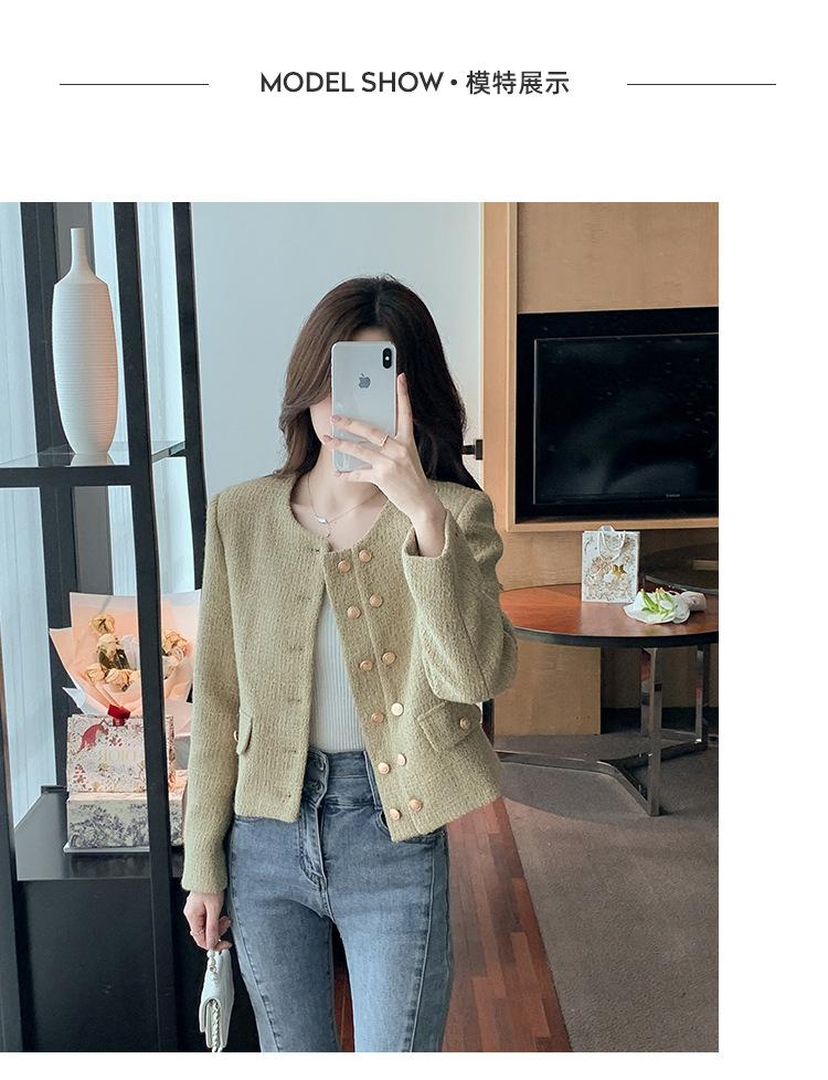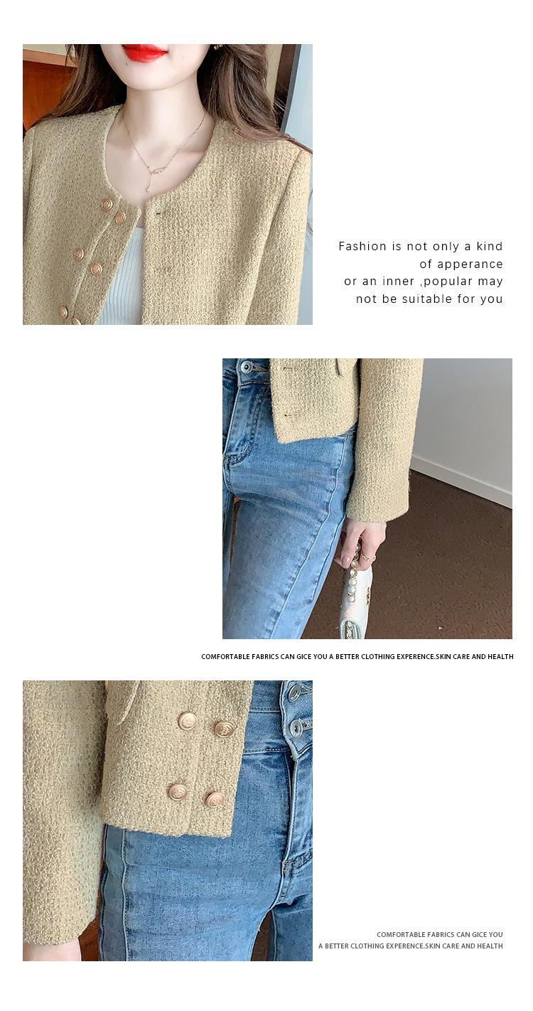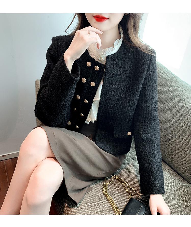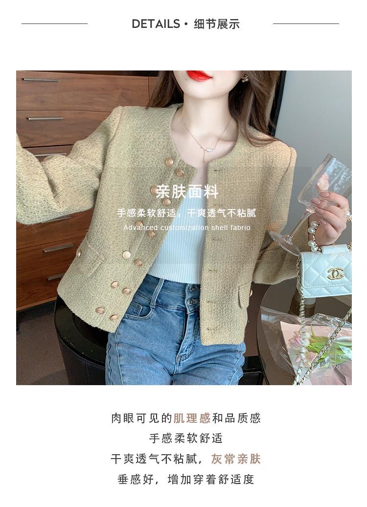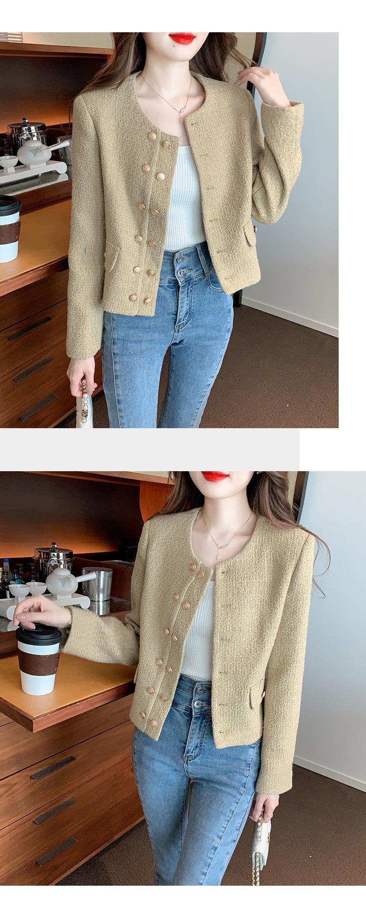 Chaqueta Corta Estilo Tweed para Mujer 2025 Otoño Nuevo Diseño Doble Botonadura Top Moderno y Versátil