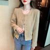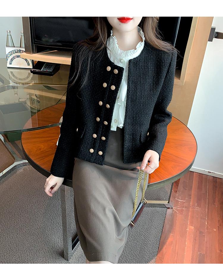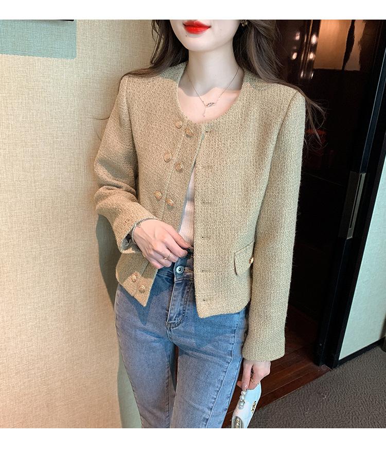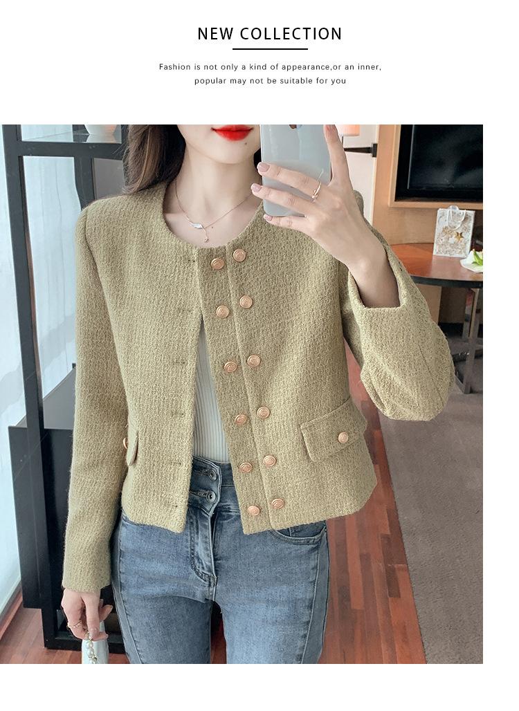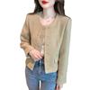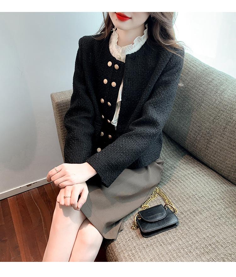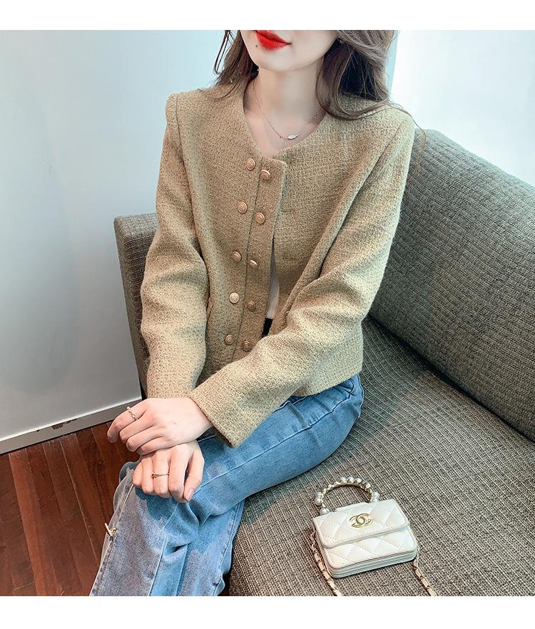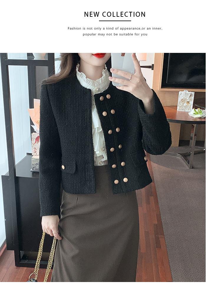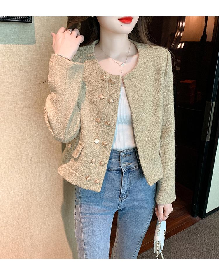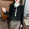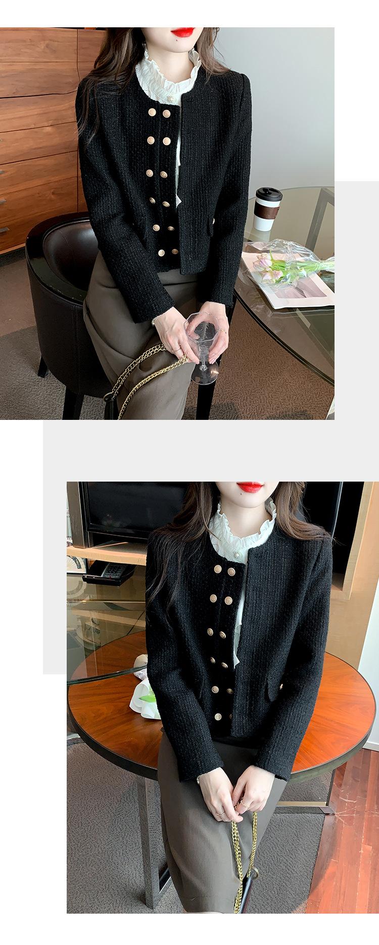 Chaqueta Corta Estilo Tweed para Mujer 2025 Otoño Nuevo Diseño Doble Botonadura Top Moderno y Versátil