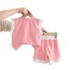 Traje de verano estilo occidental para niñas, nuevo conjunto de dos piezas de pantalones cortos de manga corta con encaje fino para bebés de verano 2025