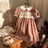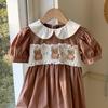 Ropa infantil coreana de verano 2025, vestido de niña con cuello de muñeca bordado de oso marrón, falda de bebé dulce de manga corta