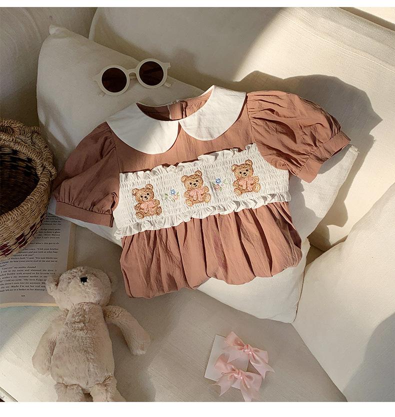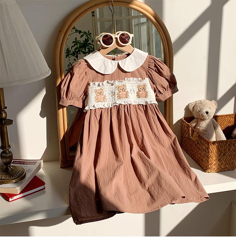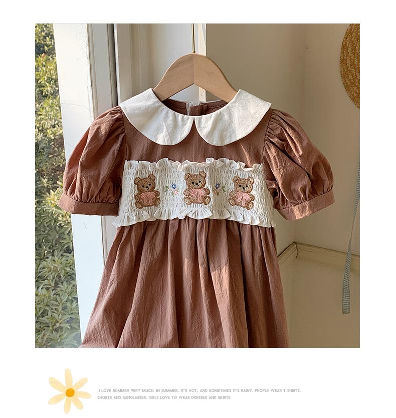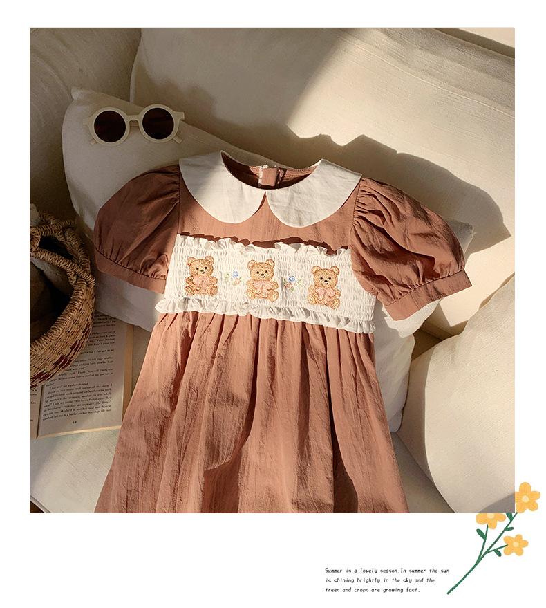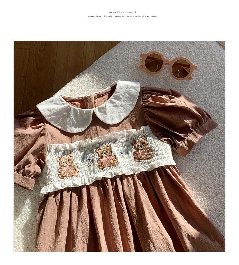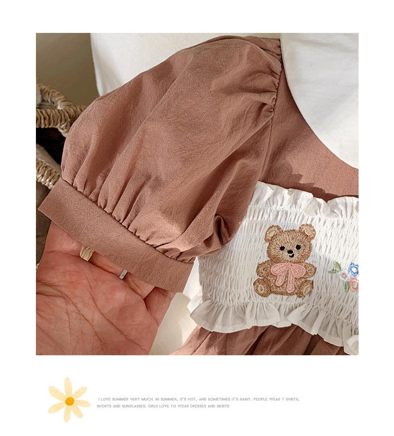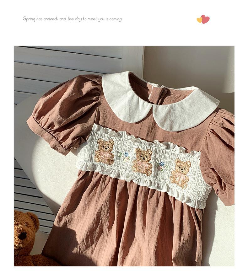 Compra Ropa infantil coreana de verano 2025, vestido de niña con cuello de muñeca bordado de oso marrón, falda de bebé dulce de manga corta al por mayor en Joom.pro
