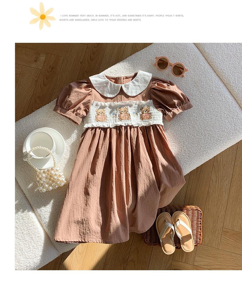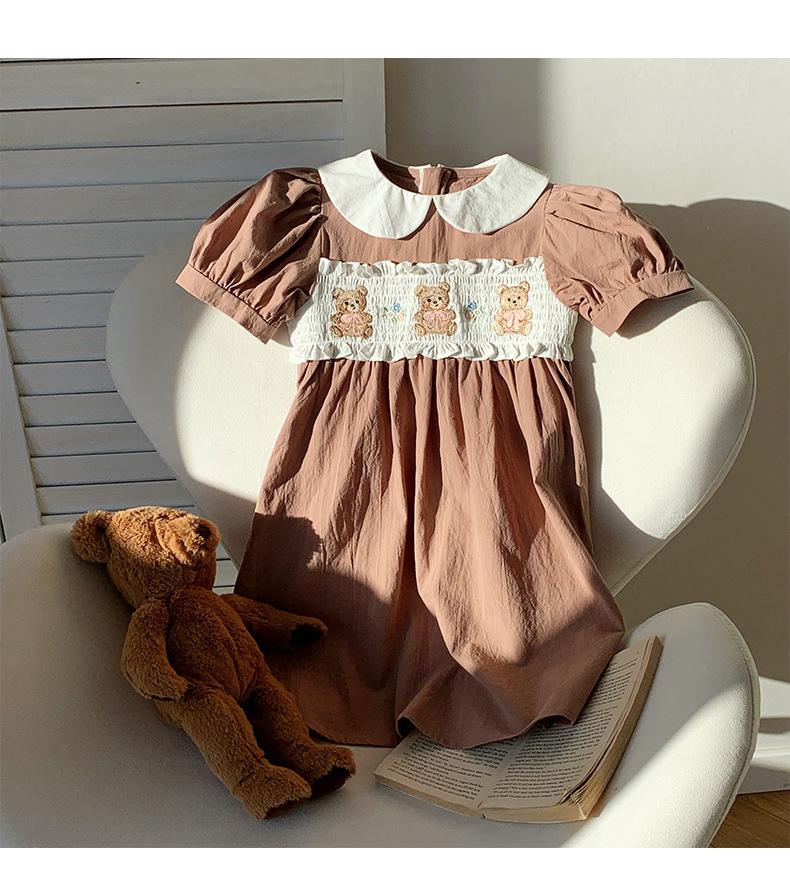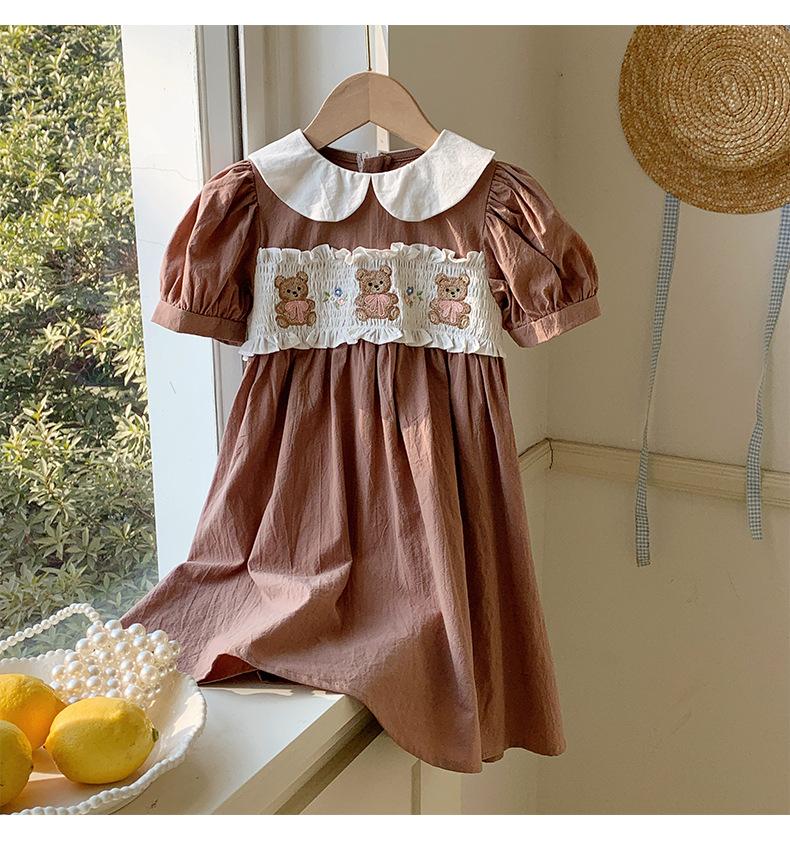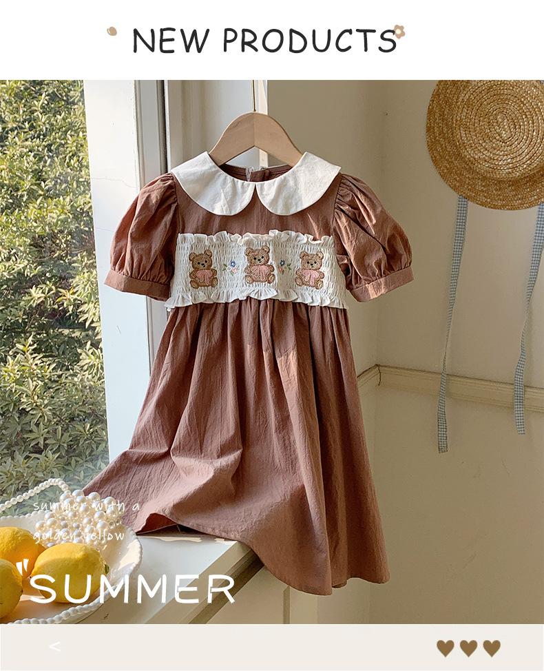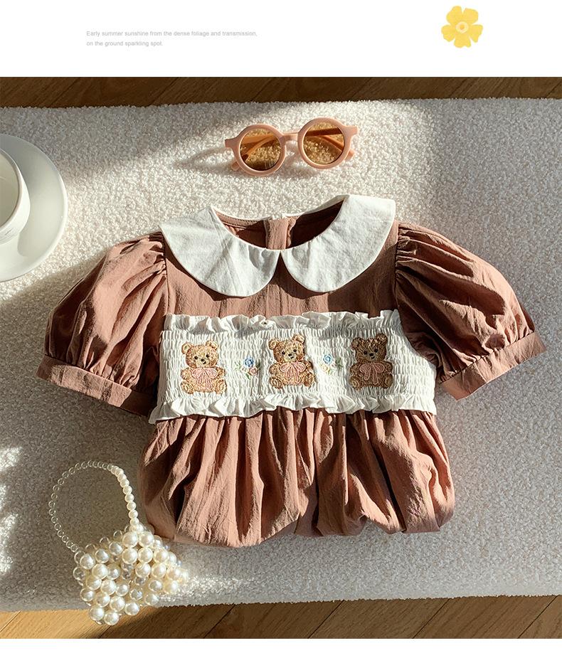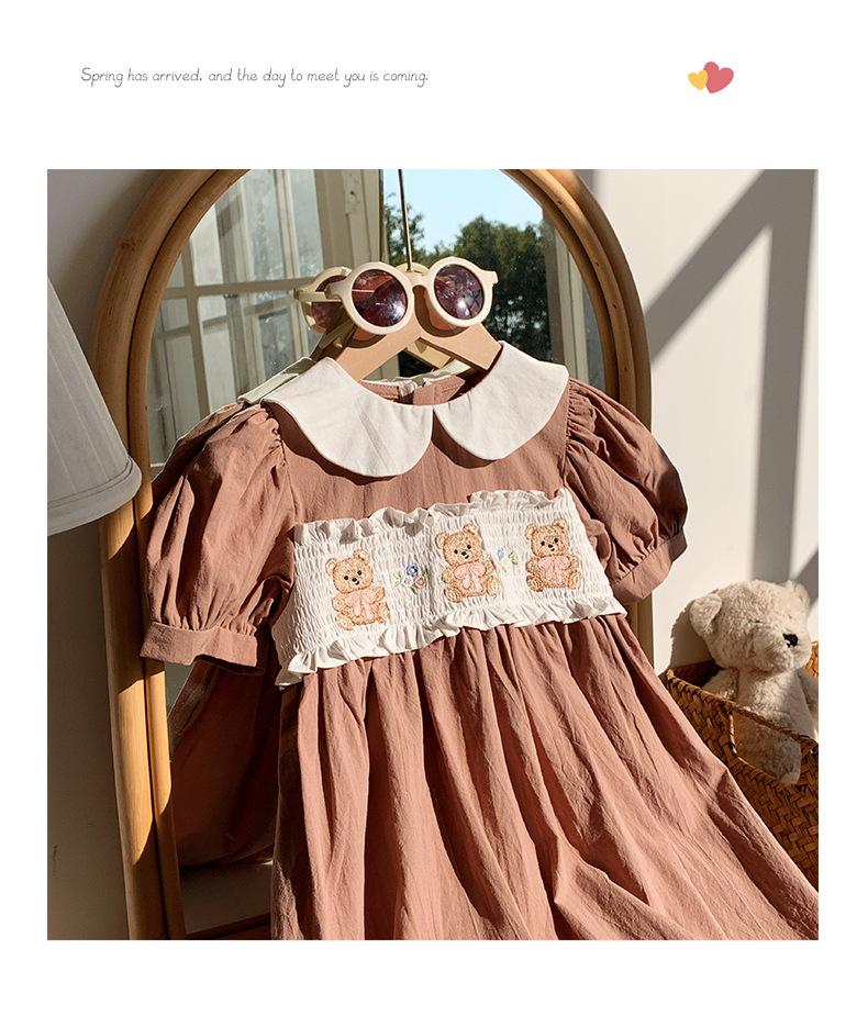 Compra Ropa infantil coreana de verano 2025, vestido de niña con cuello de muñeca bordado de oso marrón, falda de bebé dulce de manga corta al por mayor en Joom.pro