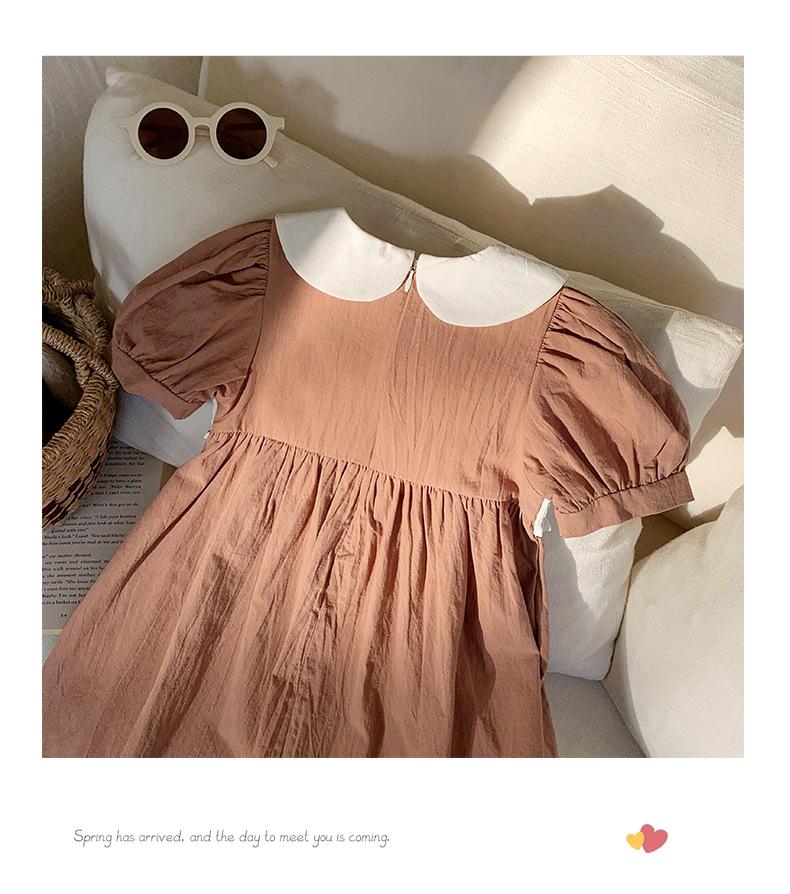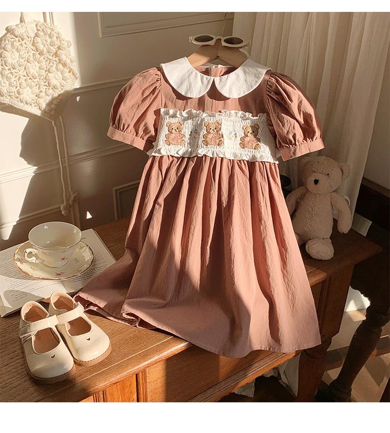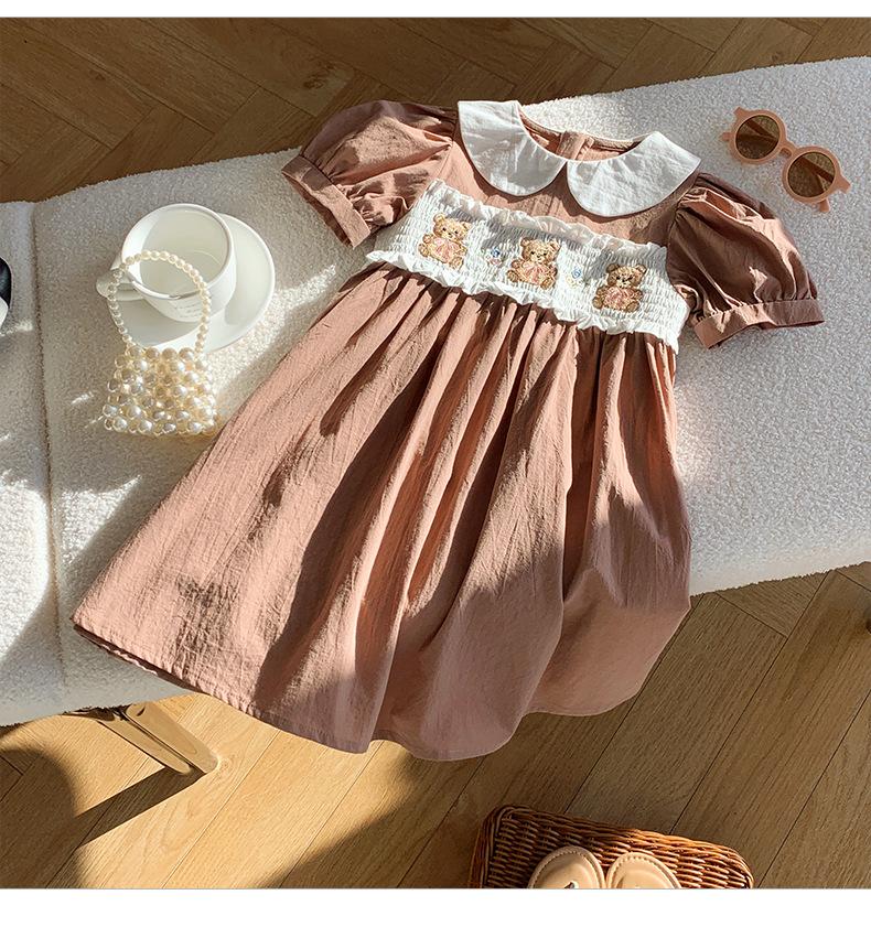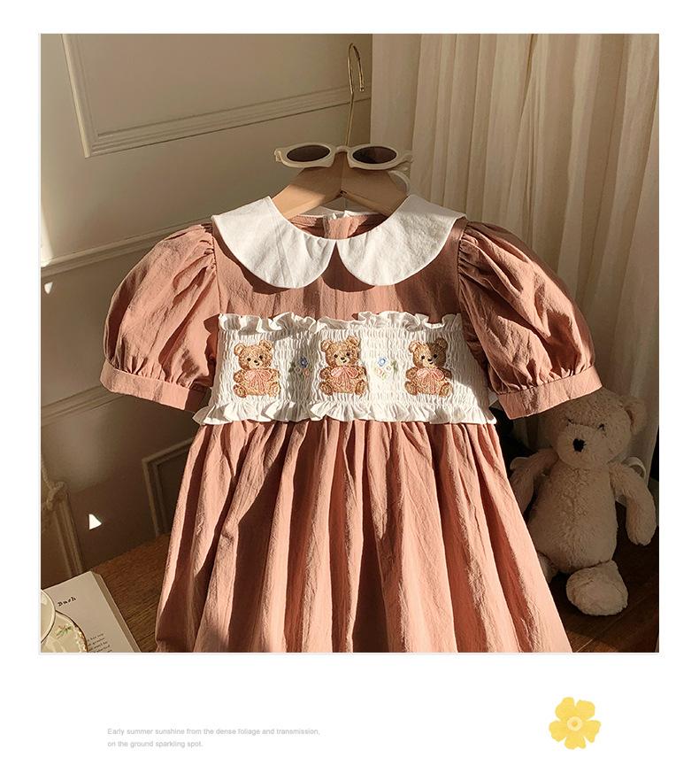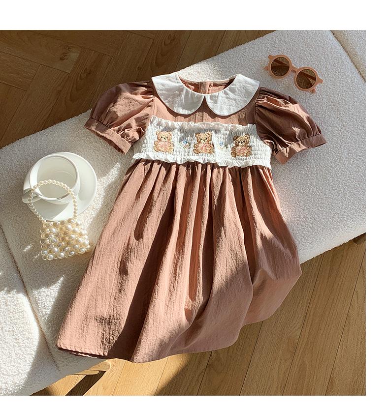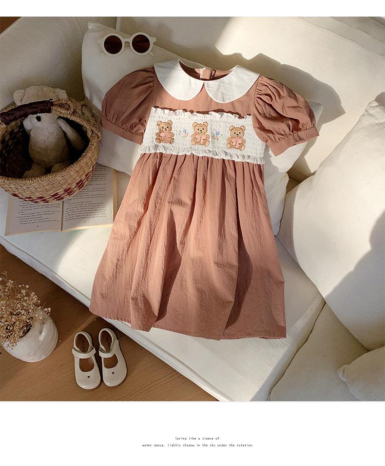 Compra Ropa infantil coreana de verano 2025, vestido de niña con cuello de muñeca bordado de oso marrón, falda de bebé dulce de manga corta al por mayor en Joom.pro