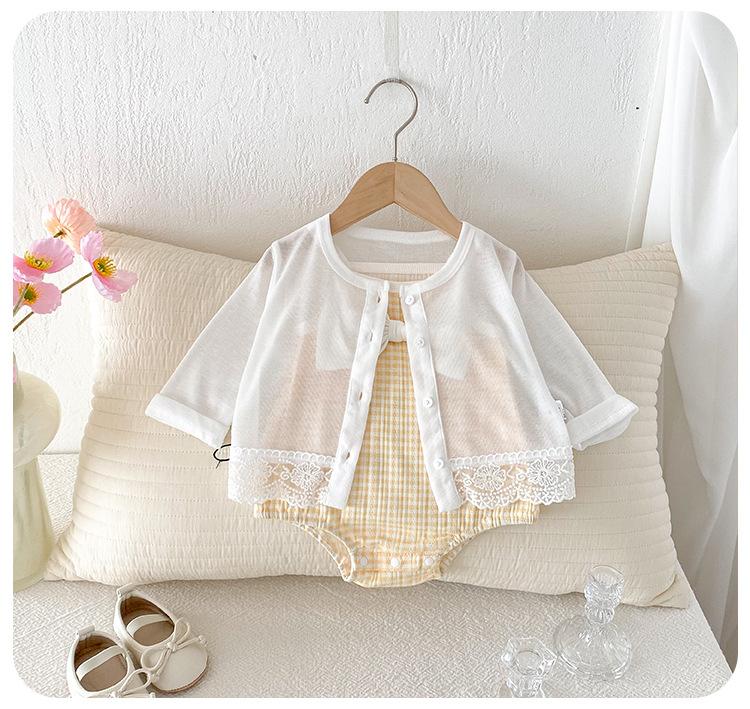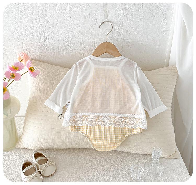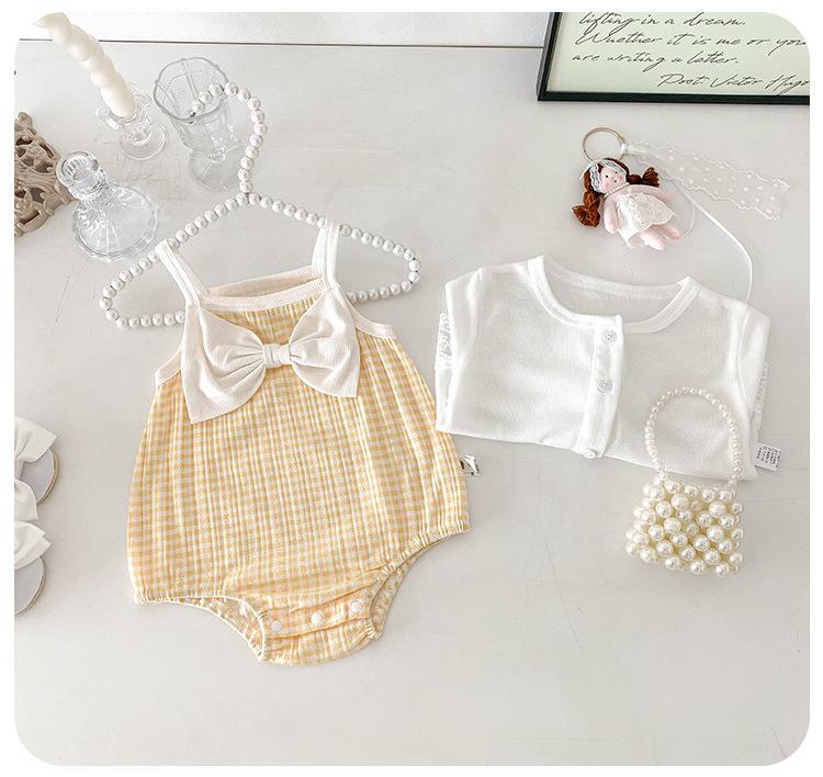 Ropa de bebé de verano para niña delgada Ropa de verano para bebé Bolso bandolera de verano estilo occidental Camisa con aire acondicionado para salir de la ciudad Ropa de escalada traje