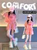 Pink-two-fold suspenders + pink four-layer gauze skirt