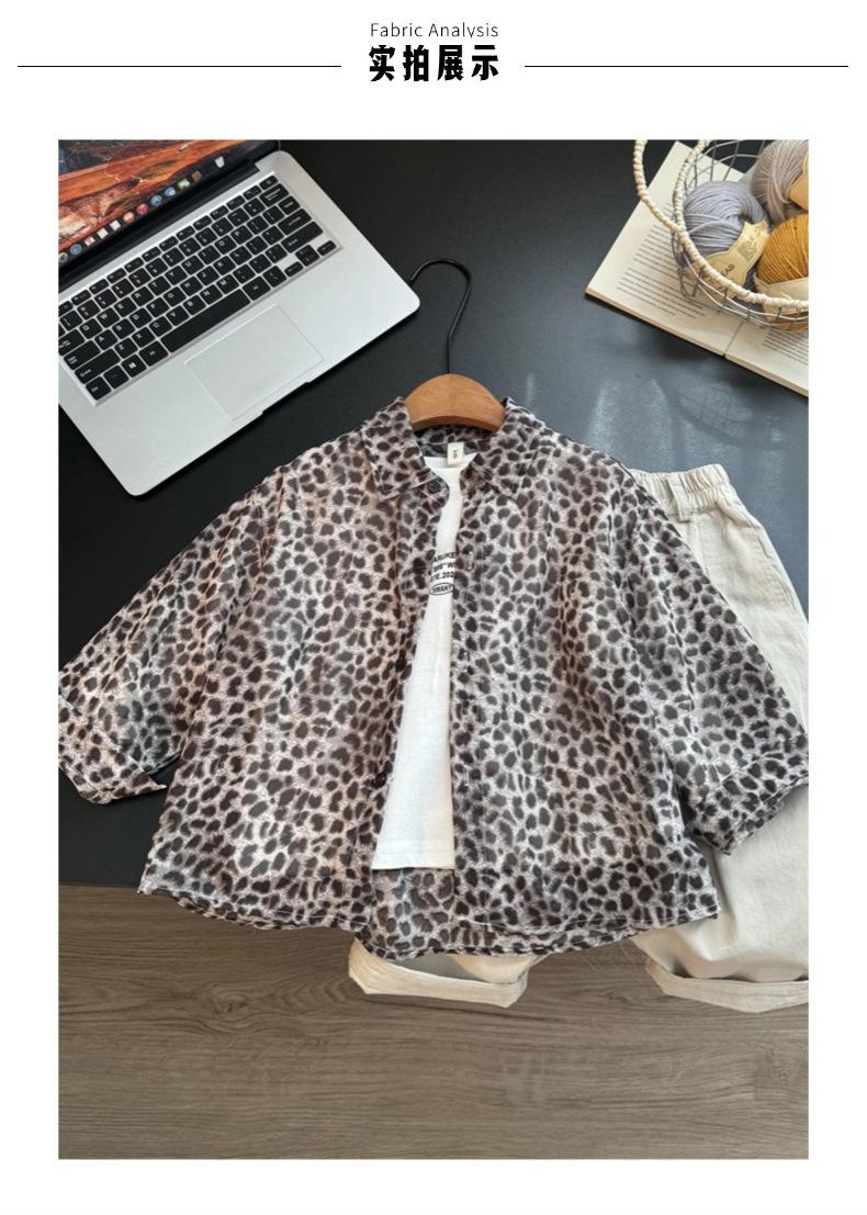 Camisa de Leopardo para Niños 2025 Verano Nuevo Casual Chaqueta de Manga Larga Niño Pequeño Protección Solar Camisa de Gasa Delgada a la Moda