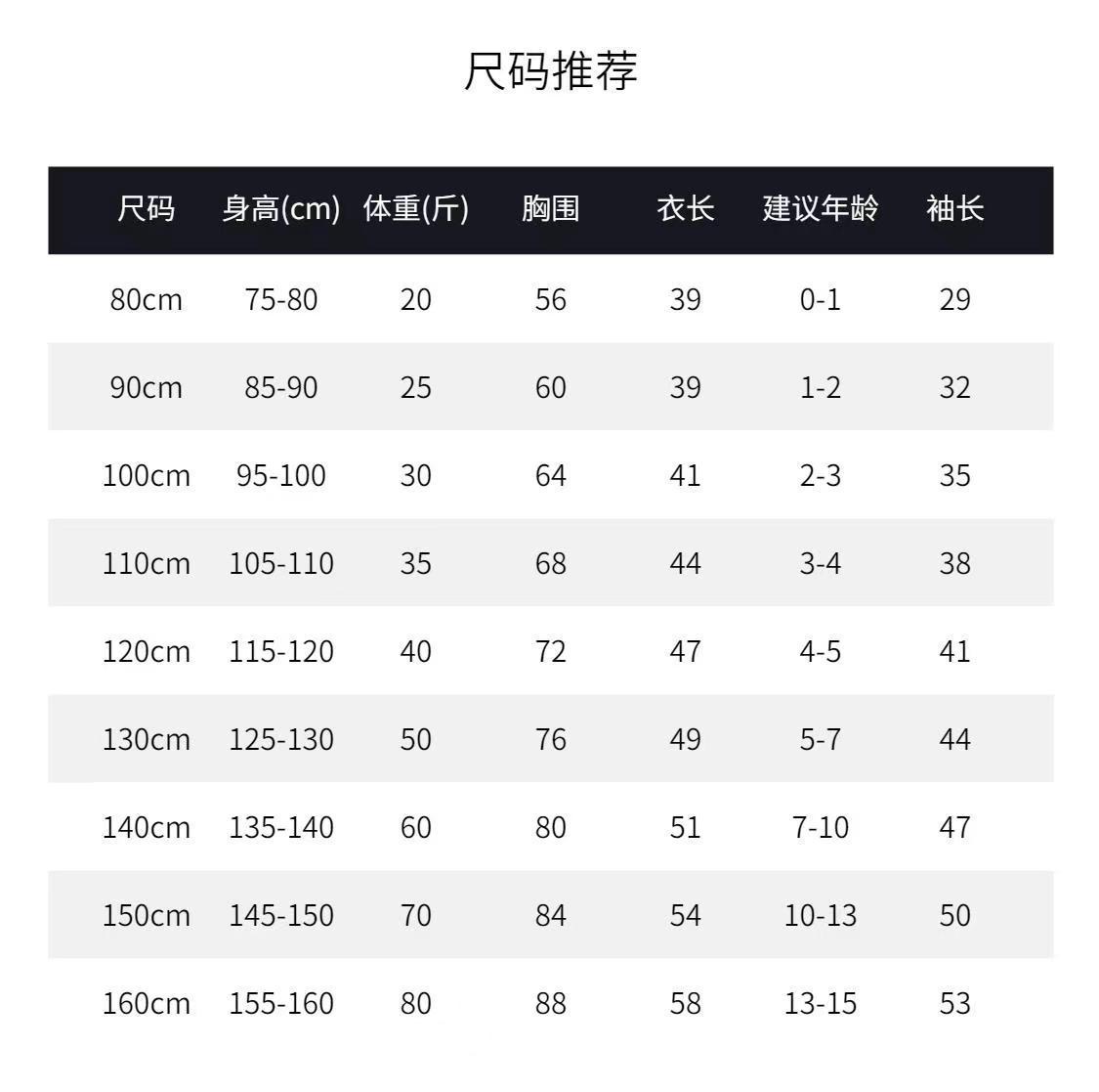 80cm, 90cm, 100cm, 110cm, 120cm, 130cm, 140cm, 150cm