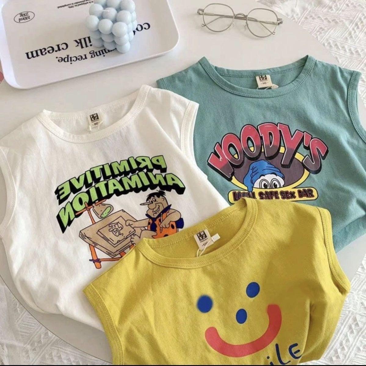 Playera sin mangas de algodón 100 para niños y niñas Verano Nuevo Infantil Combinable Estampada Chaleco de bebé Top estilo occidental