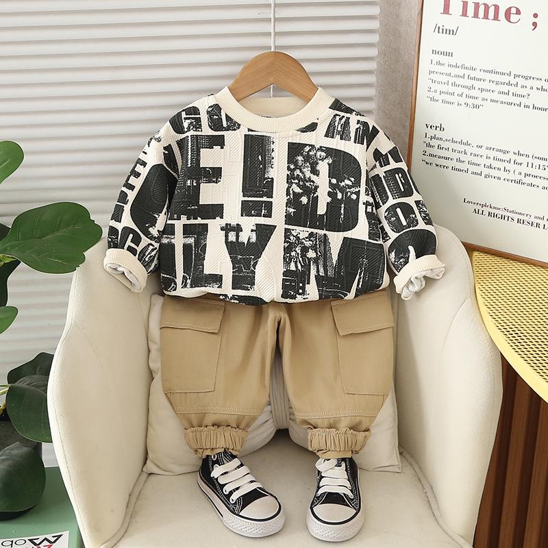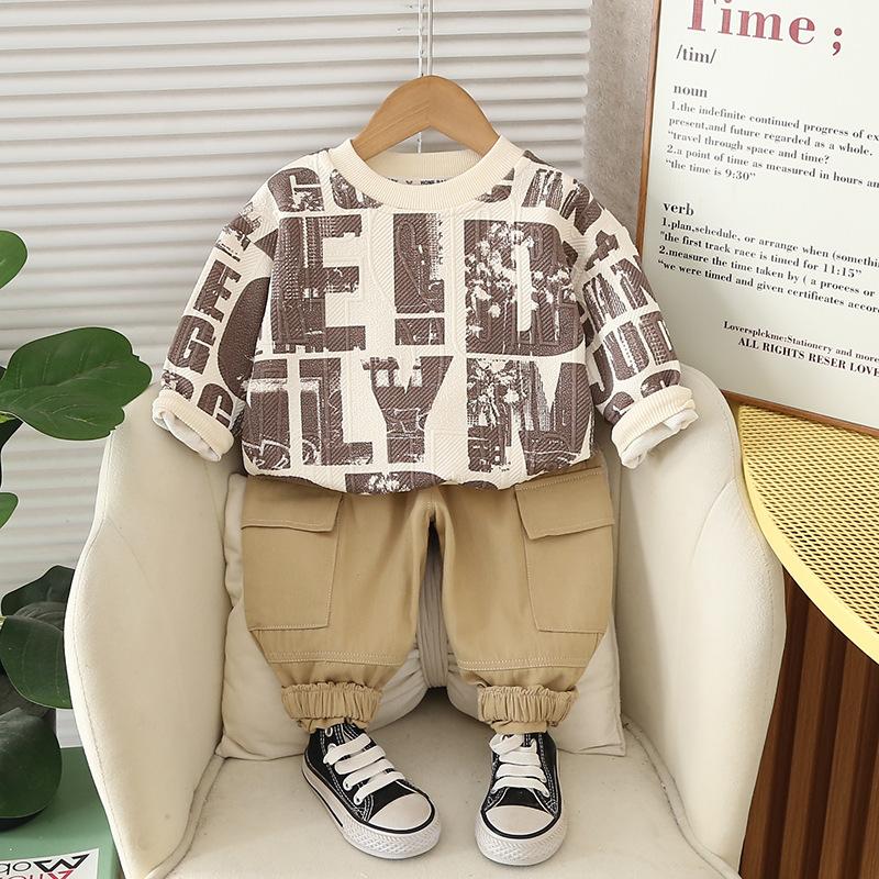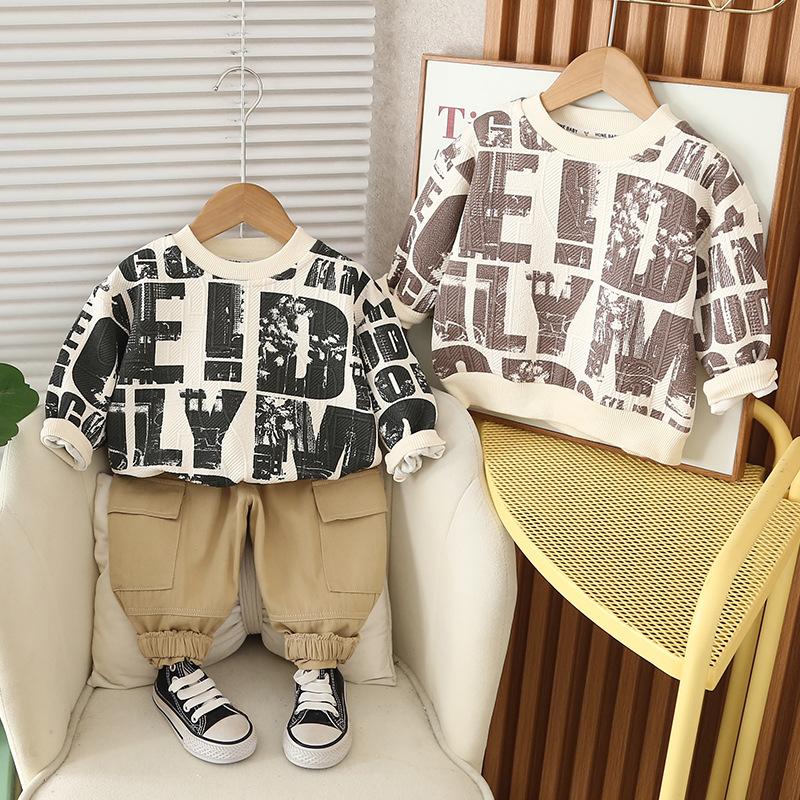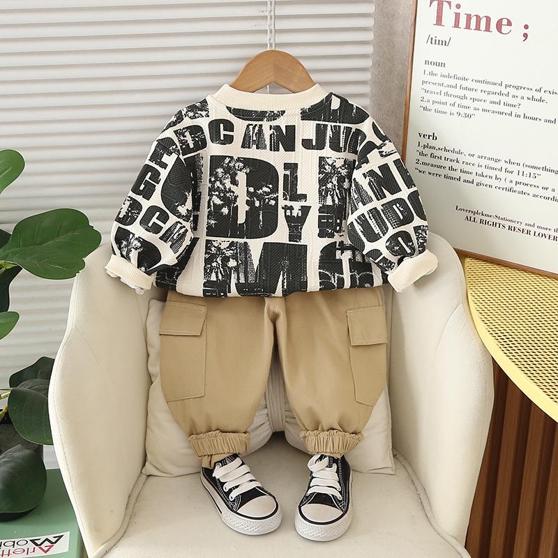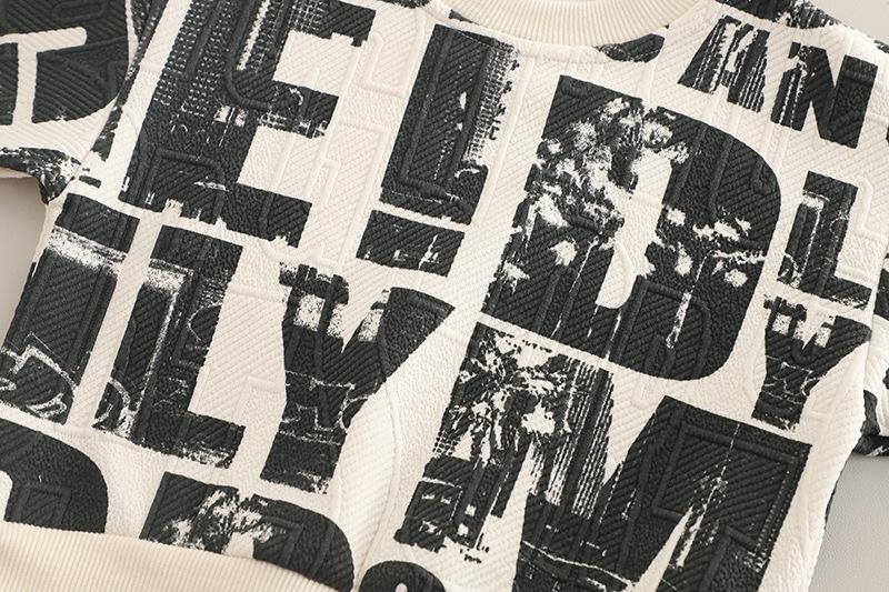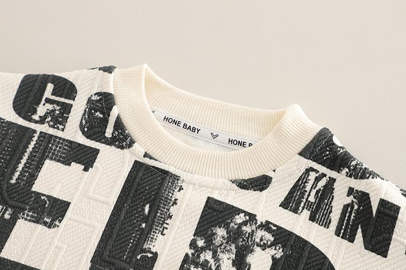 Traje de primavera para niño 2025, nuevo estilo, sudadera con letras de jacquard para bebé, primavera y otoño, ropa de dos piezas para bebé y niño