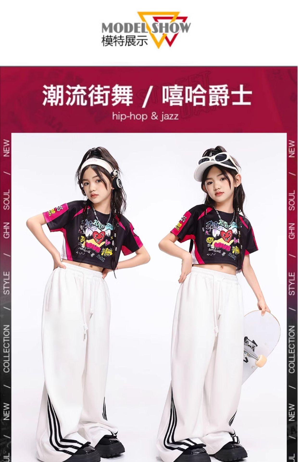 Traje de baile de jazz para niñas, traje de tambor, disfraz de espectáculo, hip hop, hip hop, baile callejero, marca de moda, traje para niños, verano