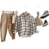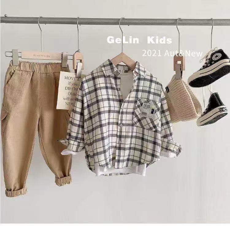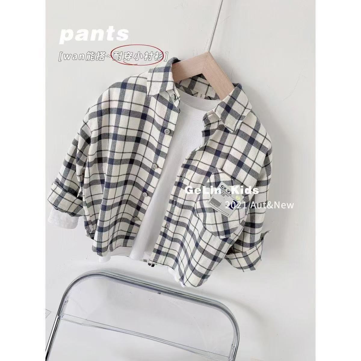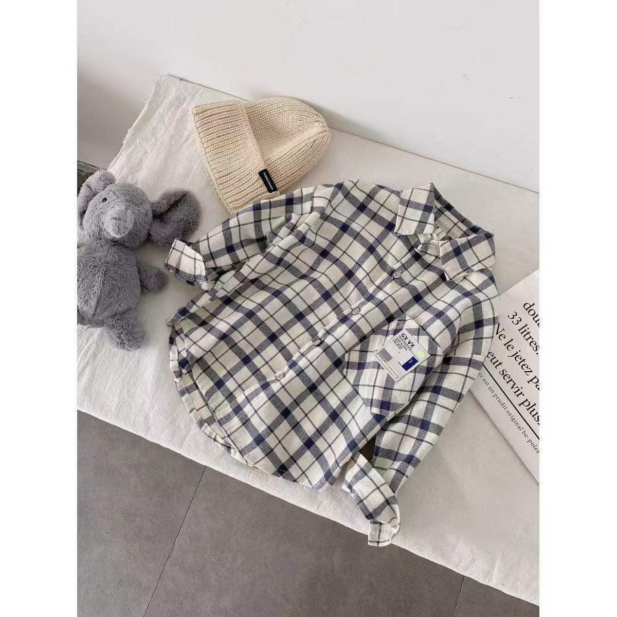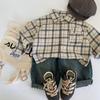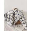 Camisa para niños, otoño 2025, elegante camisa a cuadros para bebés, cárdigan con solapa a la moda para niños.