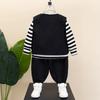 Traje para niño primavera y otoño 2025 nuevo estilo coreano para niños camisa básica a rayas conjunto de tres piezas vestido de primavera para niños
