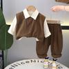 Ropa para Niños Yihui Traje de Primavera para Niños Chaleco de Trabajo de Color Puro para Niños Camisa Casual Estilo Coreano Ropa de Bebé de Manga Larga