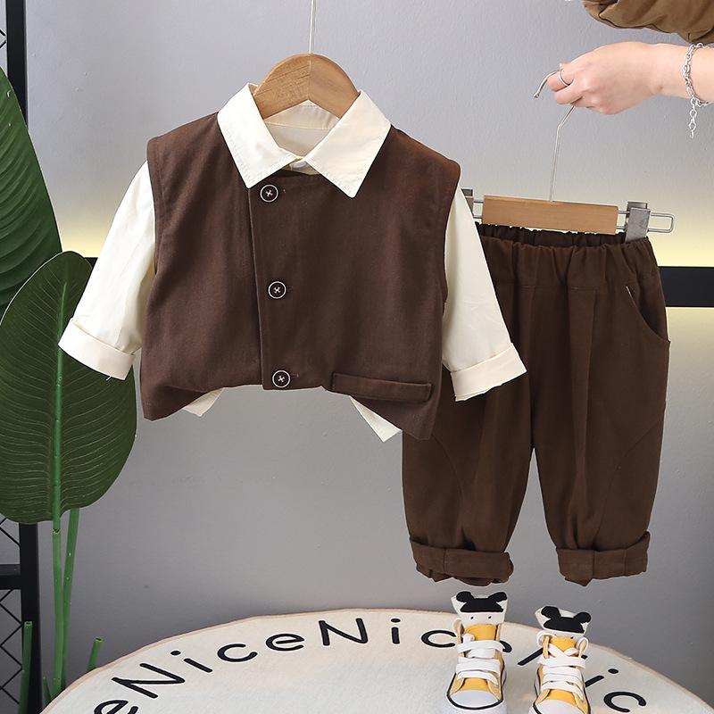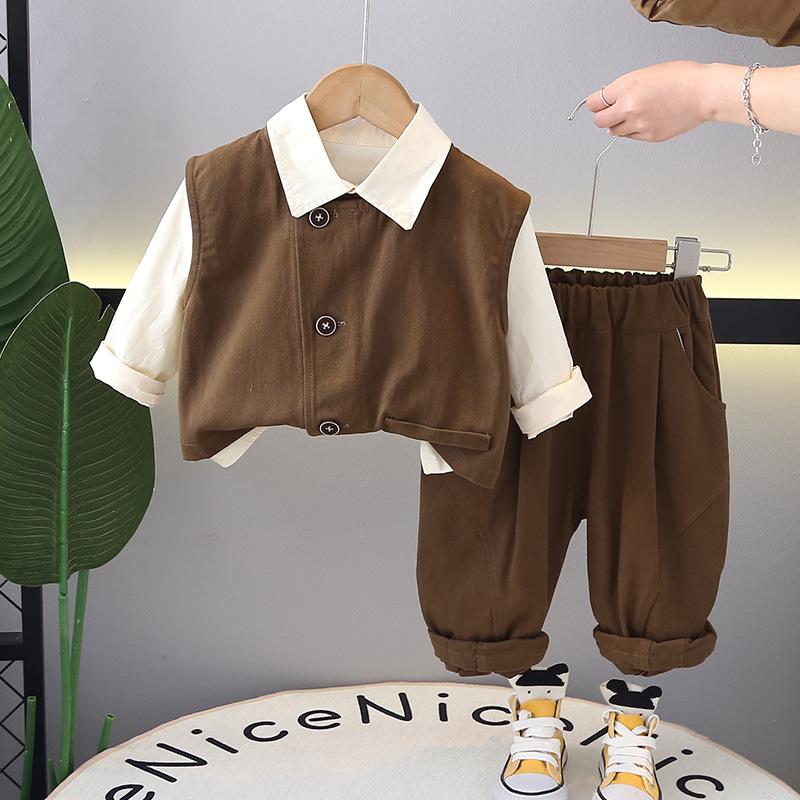 Vestcasualshirtlong sleeves three-piece set
