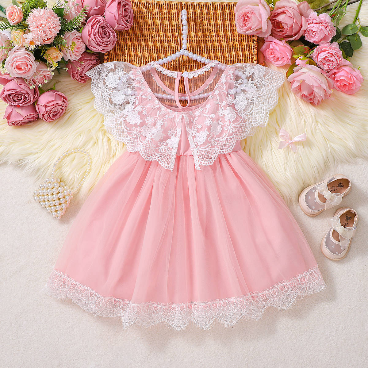 Ropa infantil de comercio exterior para niños pequeños y medianos, nuevo vestido de encaje negro de verano para niñas