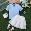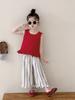 Traje de Chaleco para Niñas Moda Transpirable Amor Boca 2025 Nuevo Estilo Occidental Bebé Niña Verano Manga Corta Conjunto de Dos Piezas a la Moda