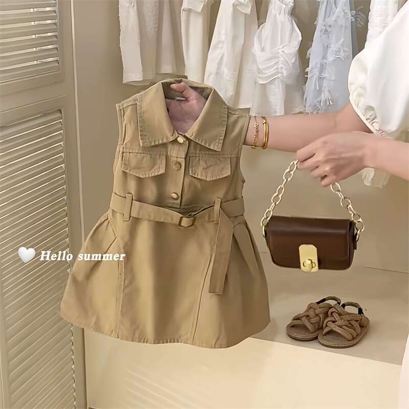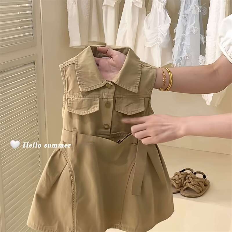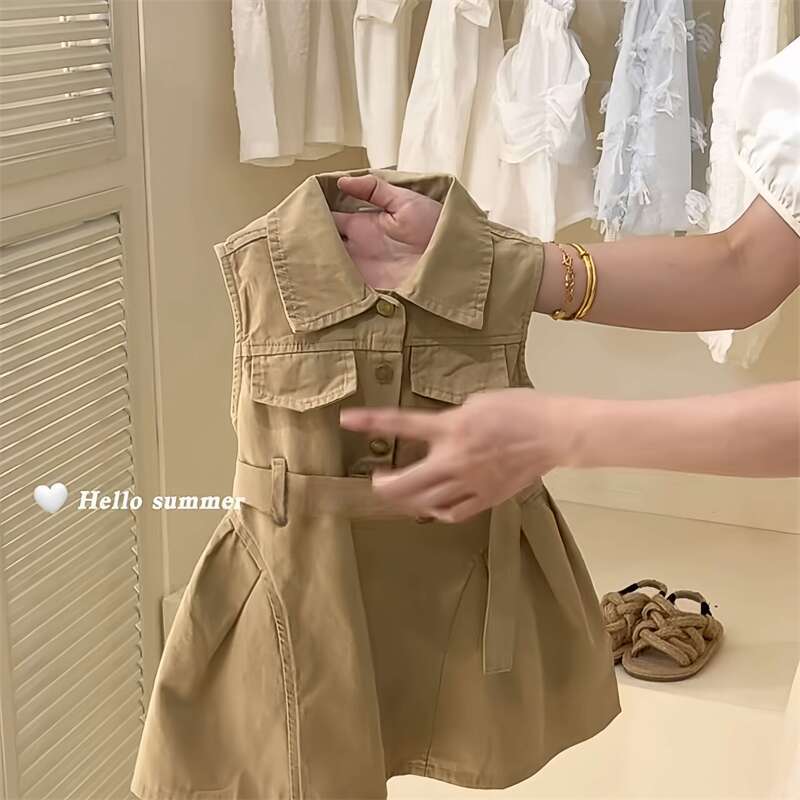 Ropa coreana para niños 2025 verano nuevo vestido sin mangas para niñas diseño de moda para bebés falda de trabajo falda chaleco