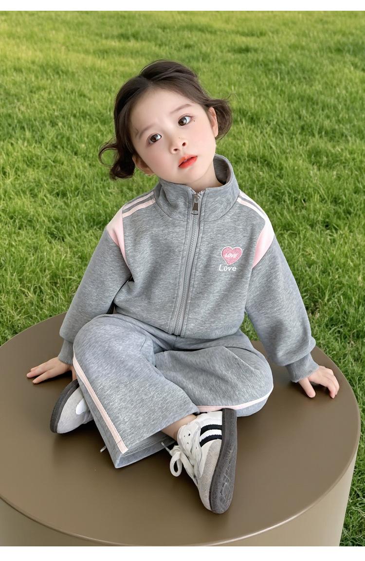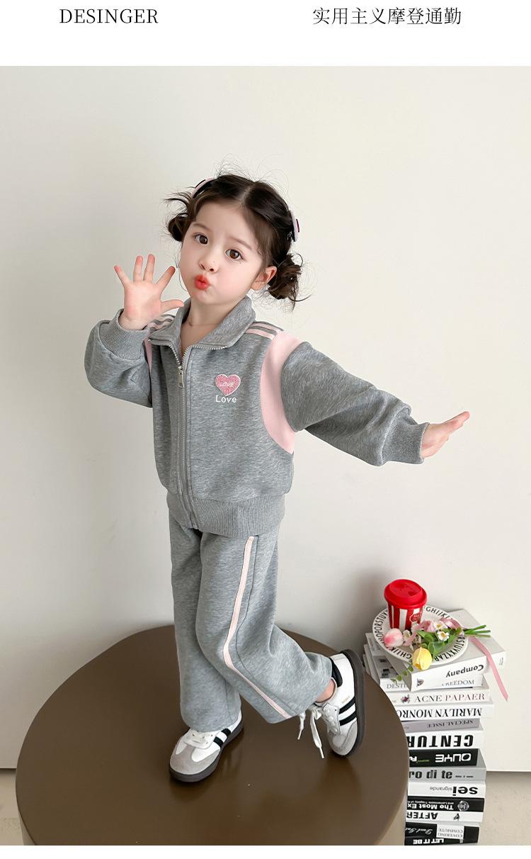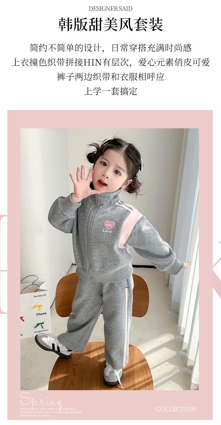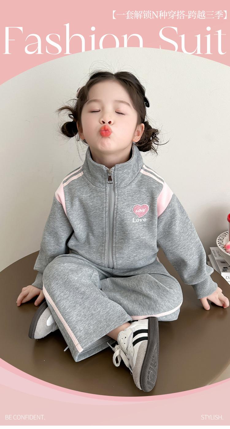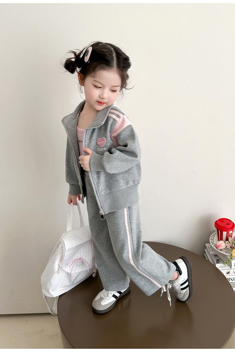 Conjunto de dos piezas con bordado de amor para niña, primavera y otoño de 2025, nuevo conjunto informal de sudadera para niña pequeña y mediana.