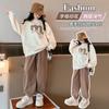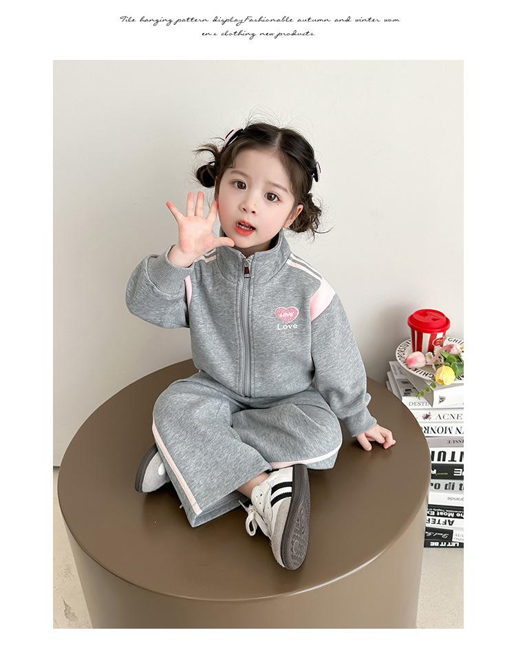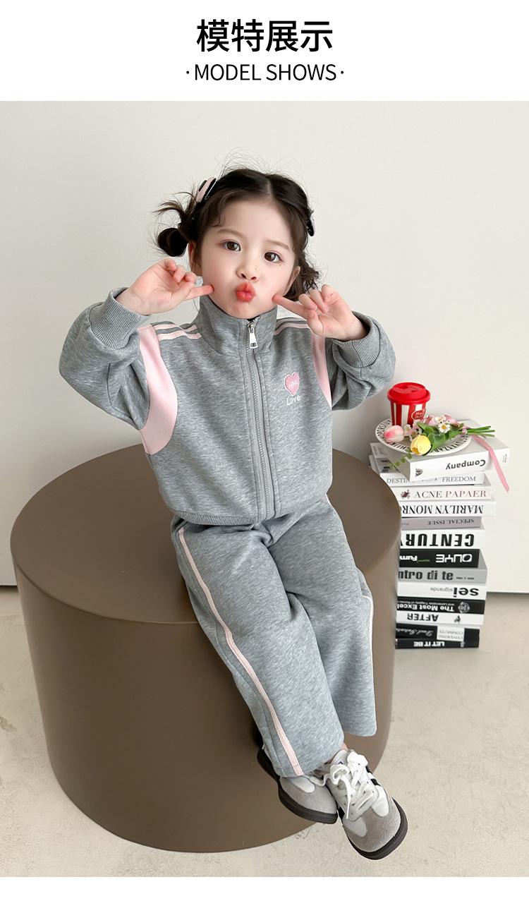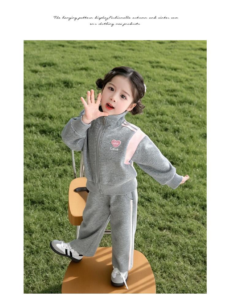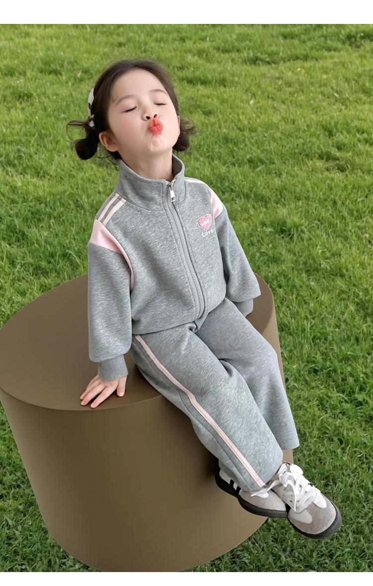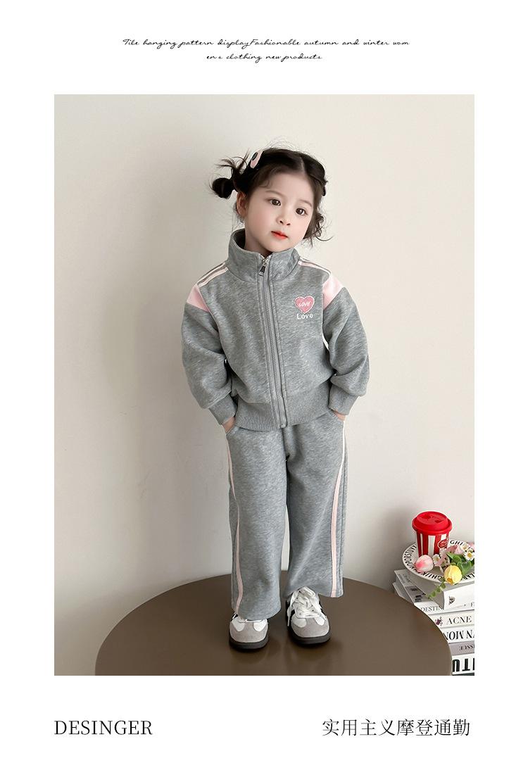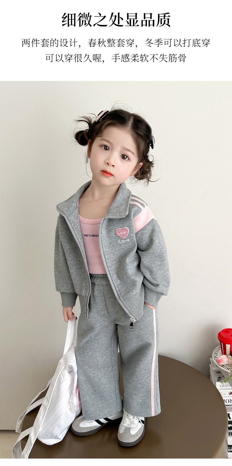 Conjunto de dos piezas con bordado de amor para niña, primavera y otoño de 2025, nuevo conjunto informal de sudadera para niña pequeña y mediana.