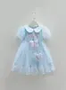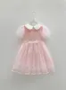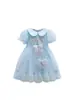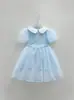 Vestido de verano para niña 2024, nuevo vestido de princesa Aisha con solapa y manga corta de malla congelada.