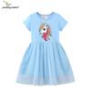 Vestido de manga corta para niña estilo europeo y americano 25 verano nuevo cuello redondo falda de princesa floral falda infantil una generación de cabello