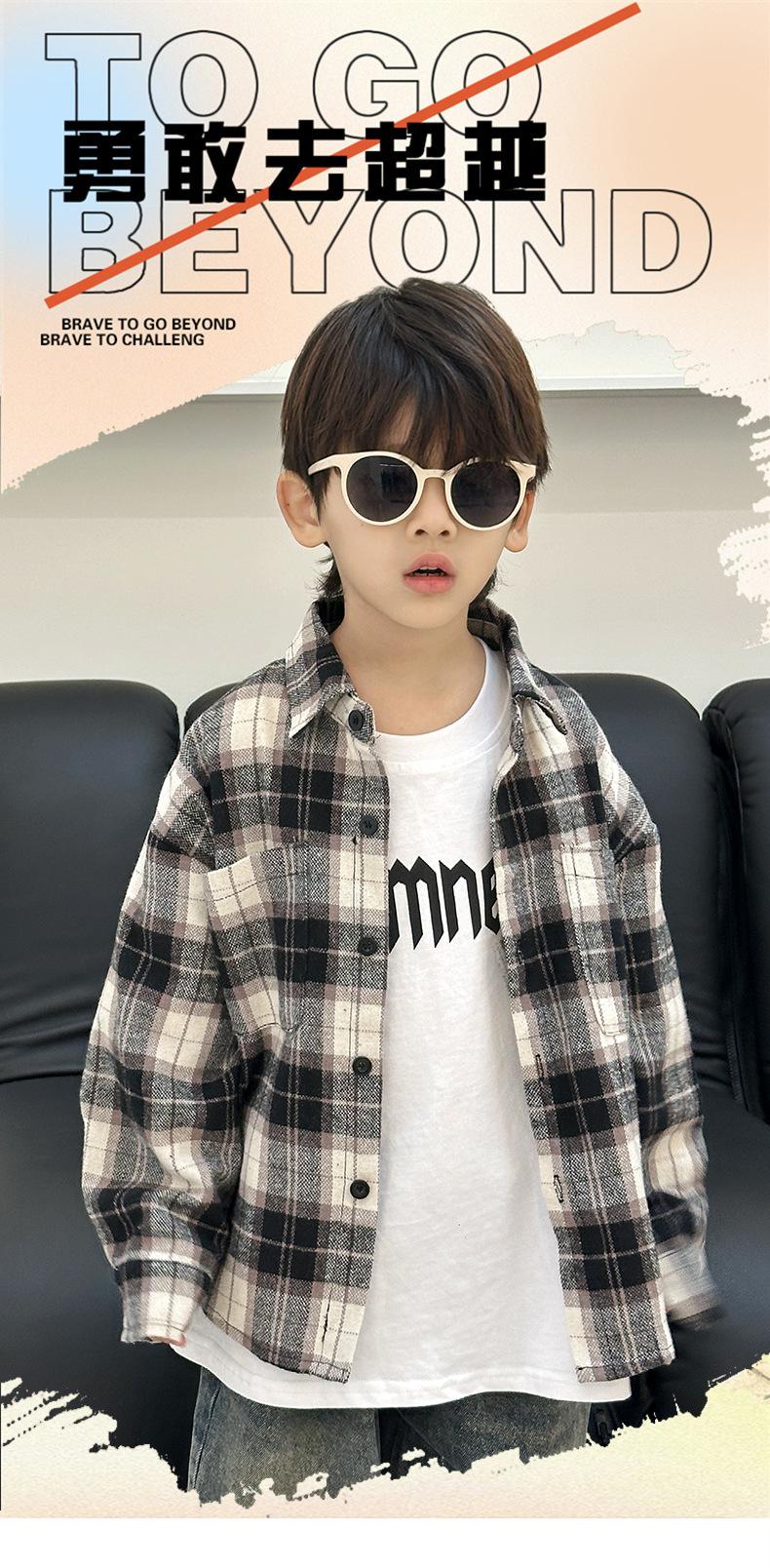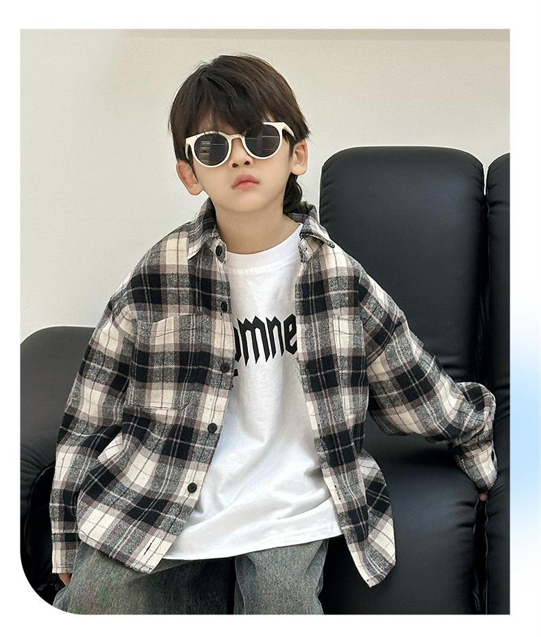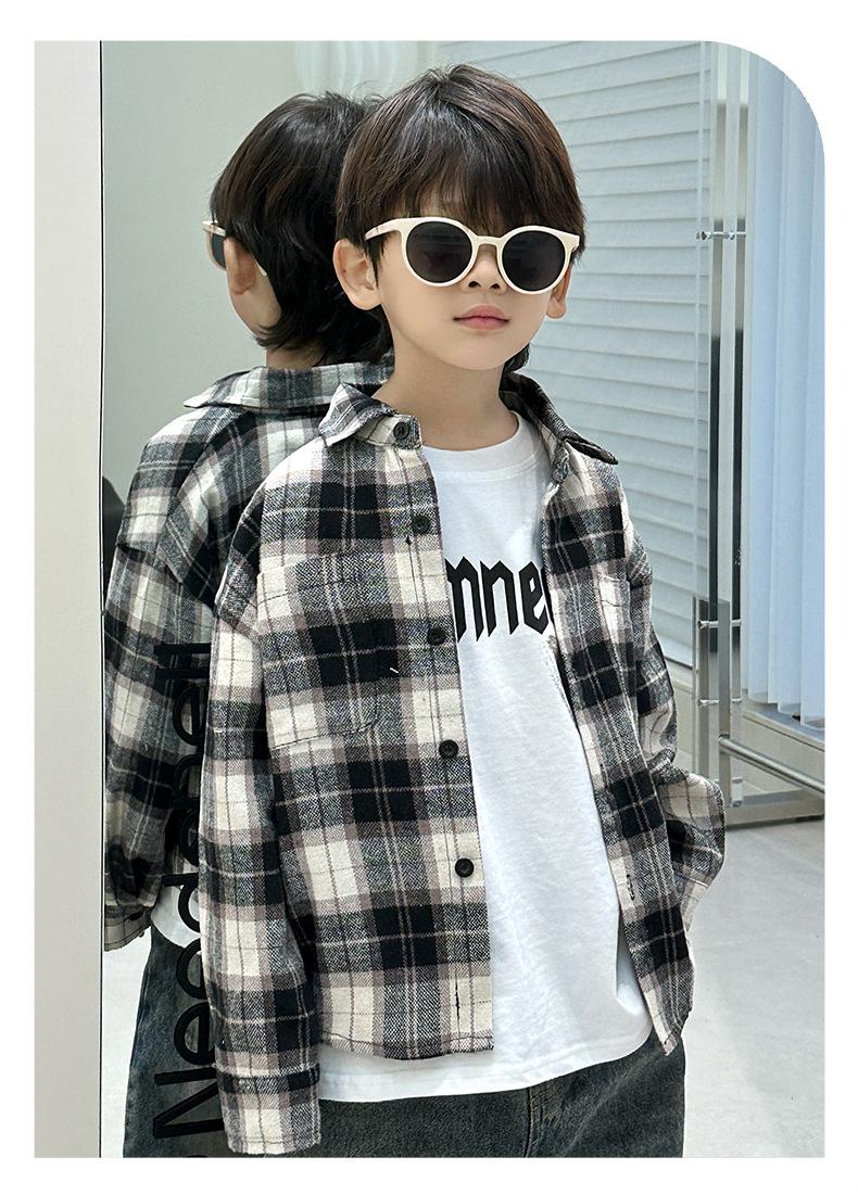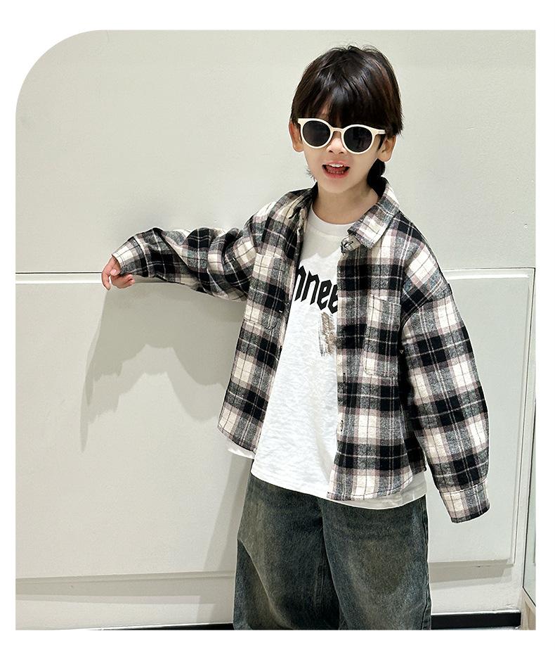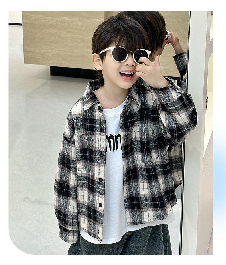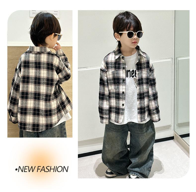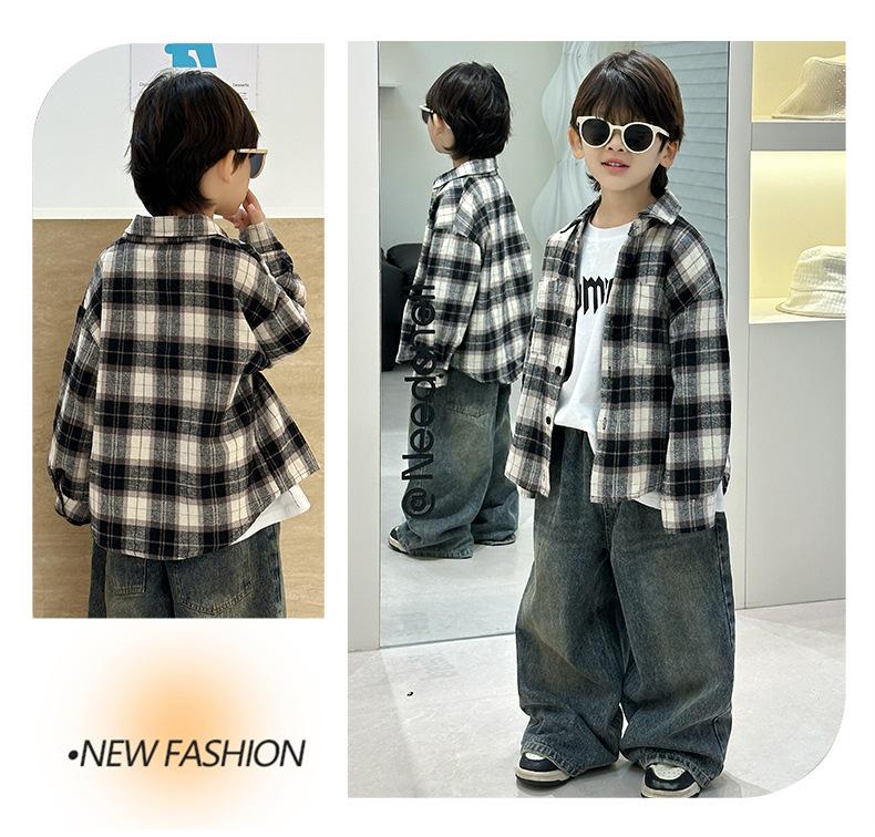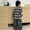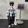 Abrigo de Primavera para Niño Estilo Occidental Camisa Infantil Estilo Coreano 2025 Nuevo Top Ligero de Cuadros para Niño Guapo de Primavera y Otoño
