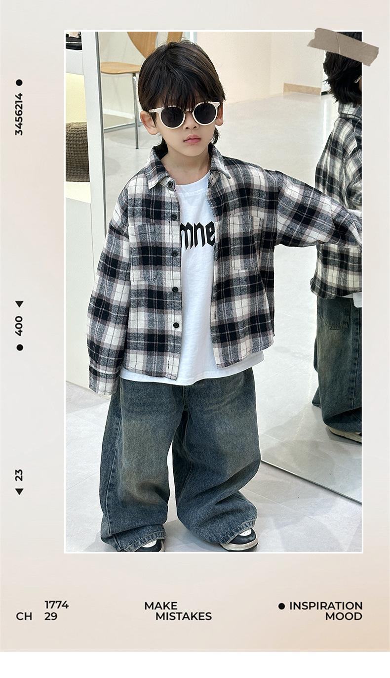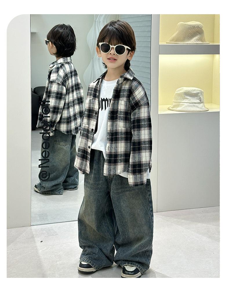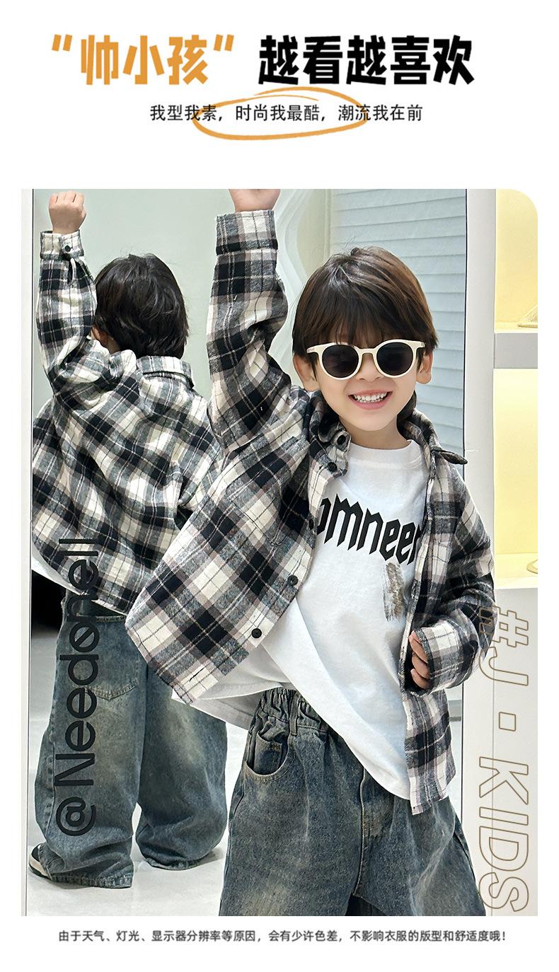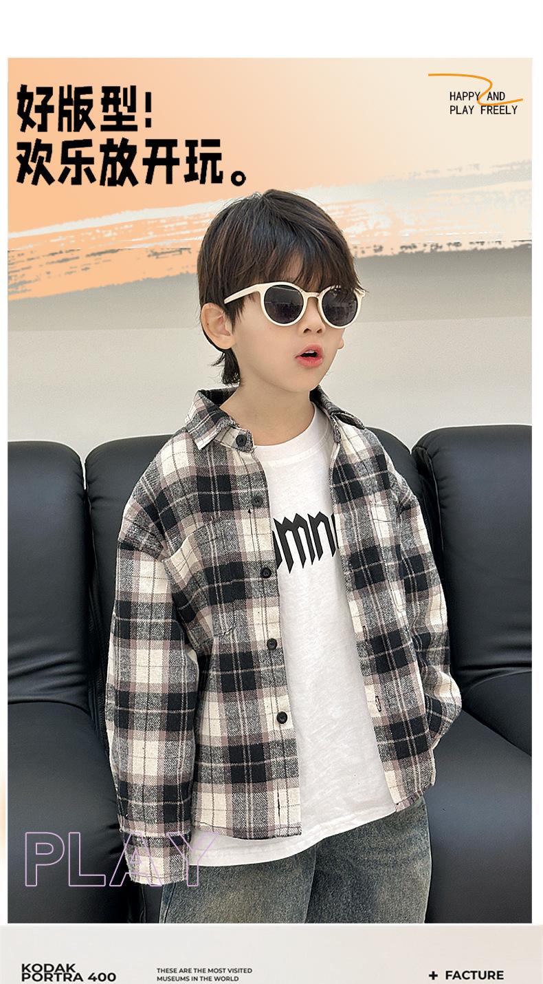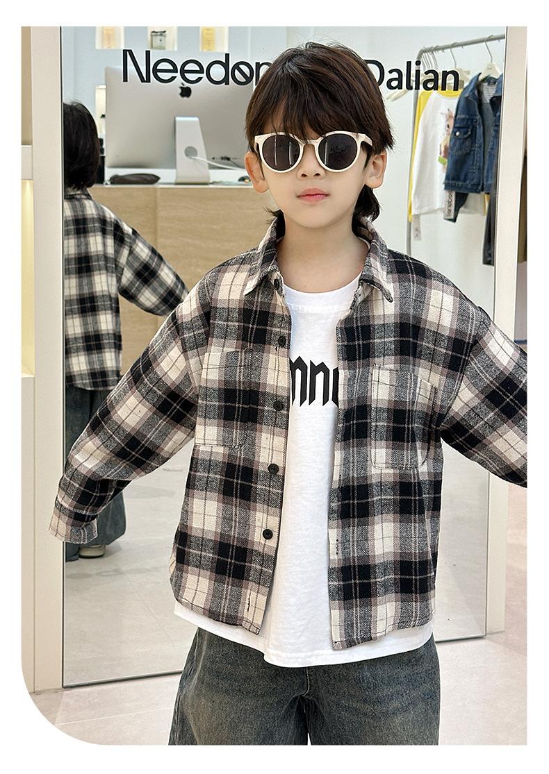 Abrigo de Primavera para Niño Estilo Occidental Camisa Infantil Estilo Coreano 2025 Nuevo Top Ligero de Cuadros para Niño Guapo de Primavera y Otoño