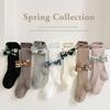 Leggings de primavera y verano para niños 2025 pantimedias para niñas calcetines de fondo lazo algodón peinado calcetines sin costuras al por mayor