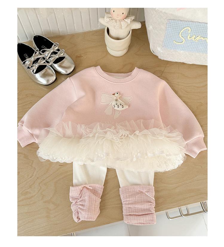 Conjunto de Otoño Dulce para Bebé Niña Top de Malla Otoñal Ropa para Bebé Niña Leggings Conjunto de Dos Piezas Categoría a