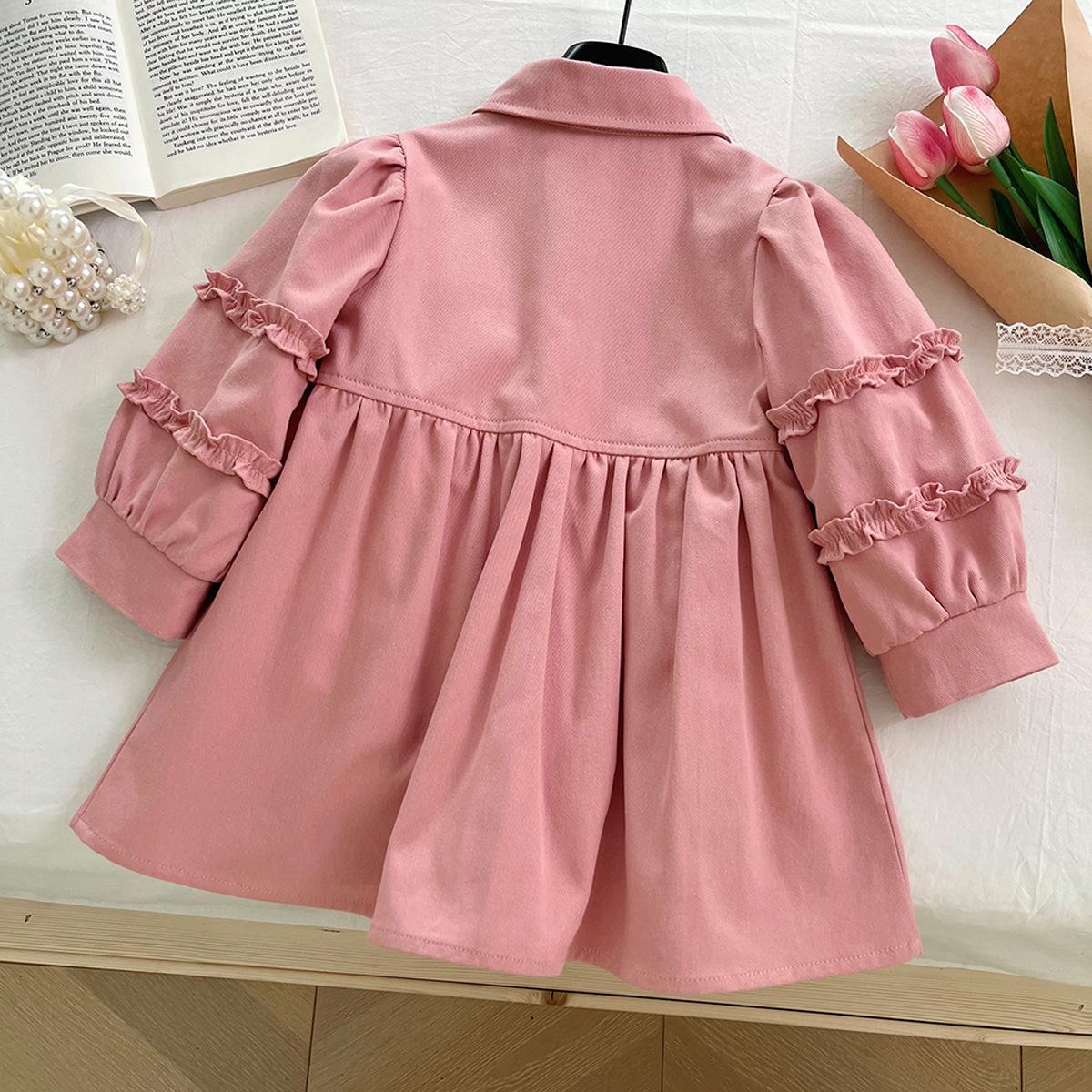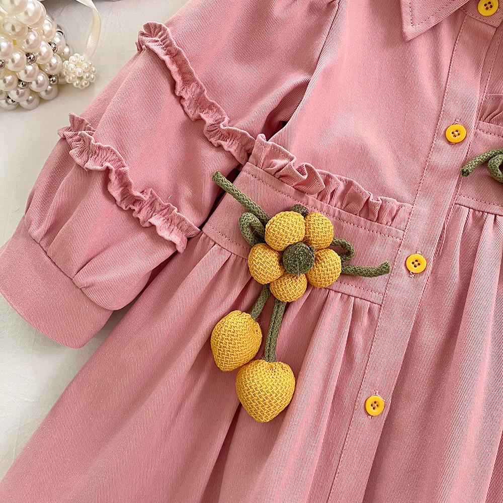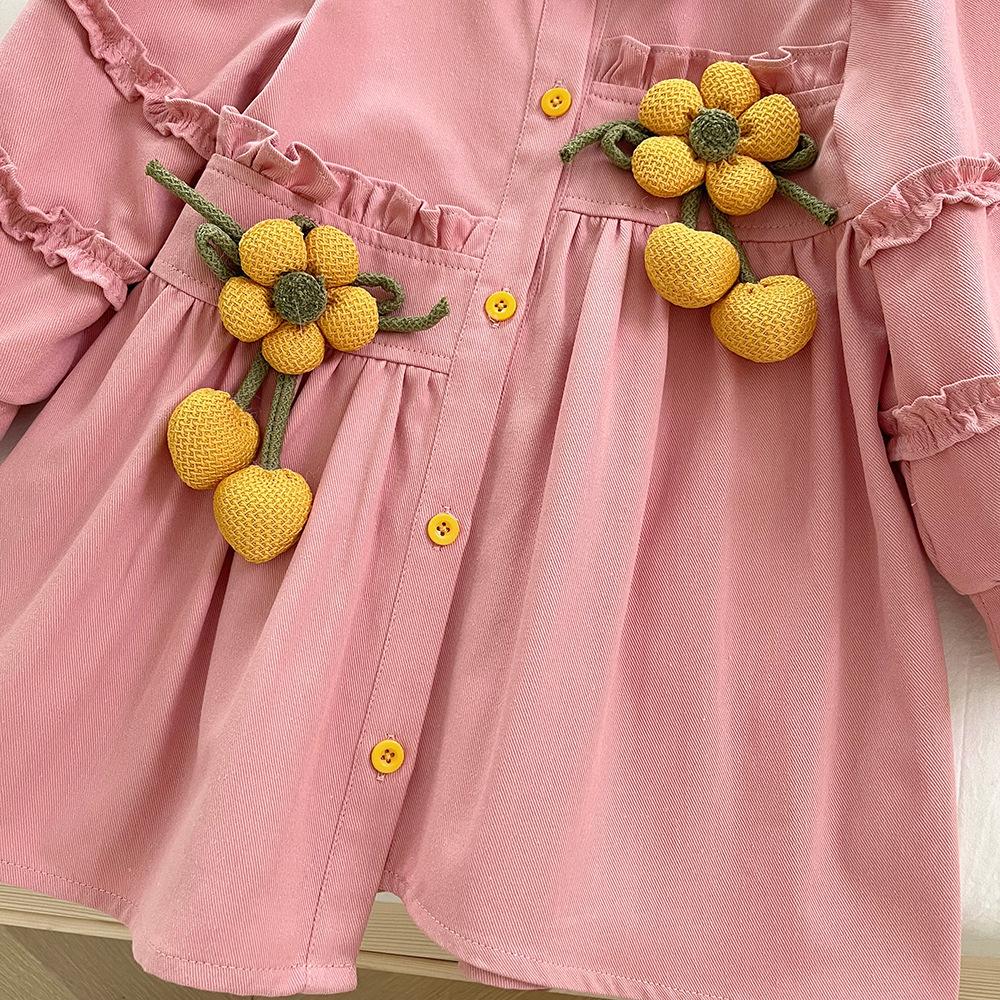 Primavera y otoño 2025 Nuevo vestido camisero de estilo coreano para niña Vestido de manga larga con girasol tridimensional para niña de moda