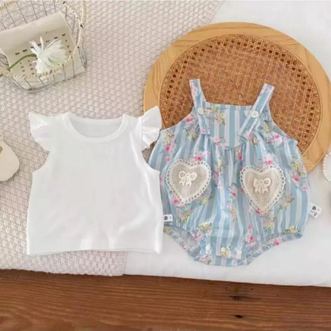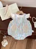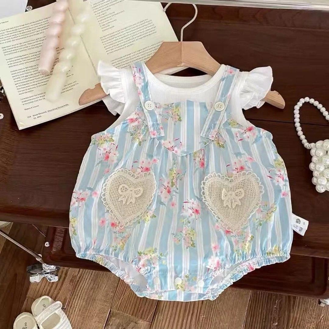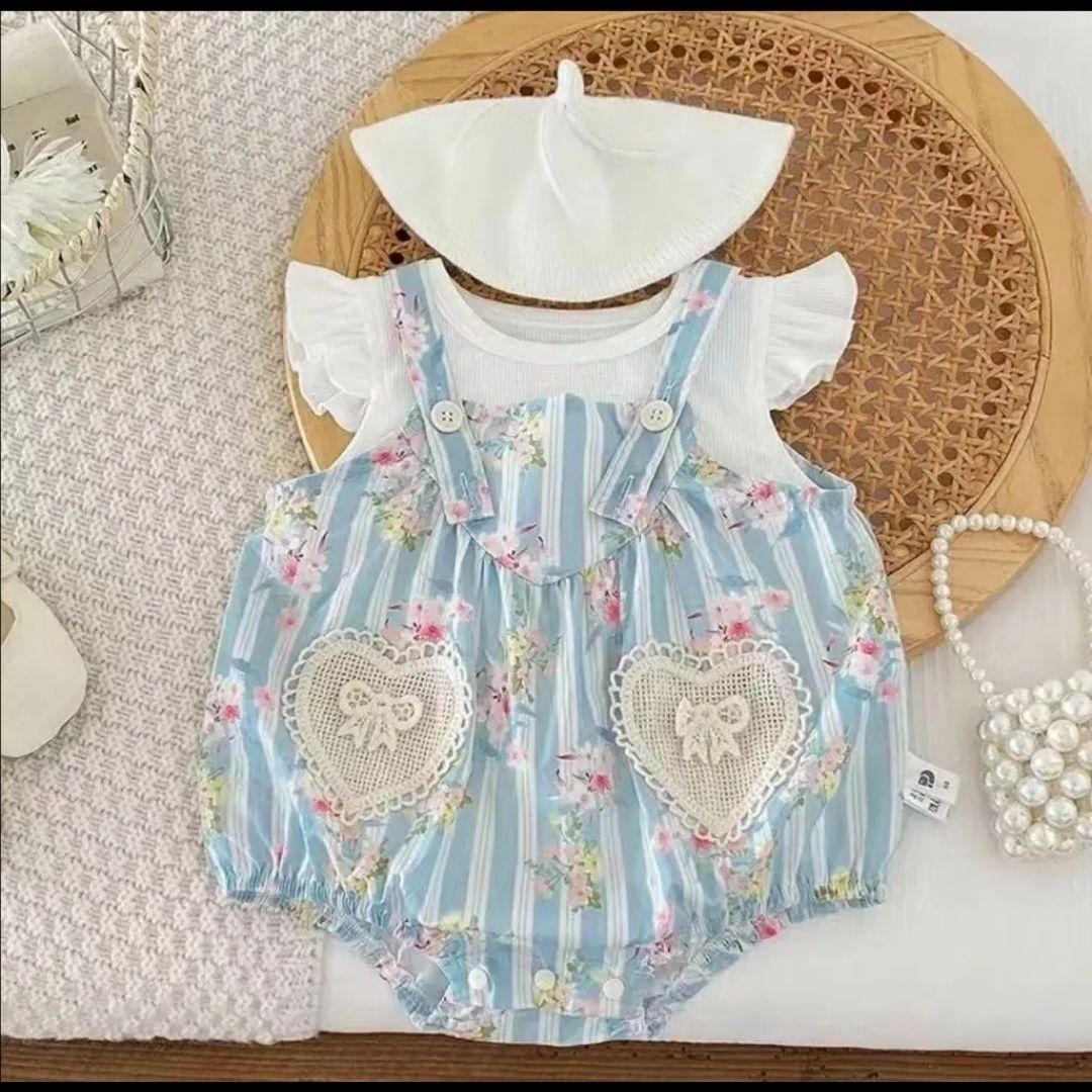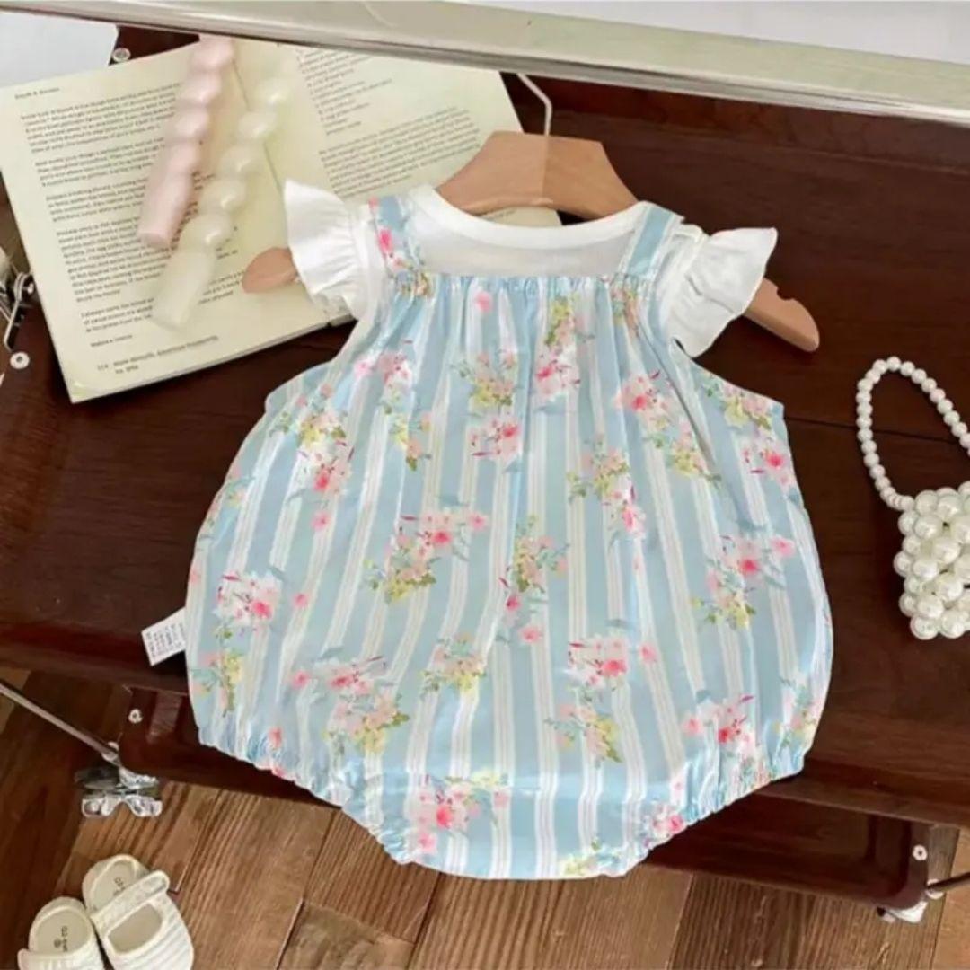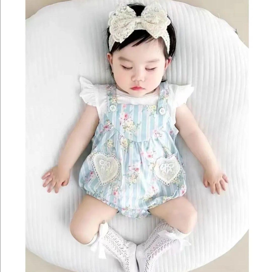 Explosiones de Verano estilo Coreano Bebé Femenino Tirantes Florales Traje de Ropa de Liebre Estilo Princesa Bolsa Ropa de Pedos Ropa para Bebé Cien Días Luna Llena