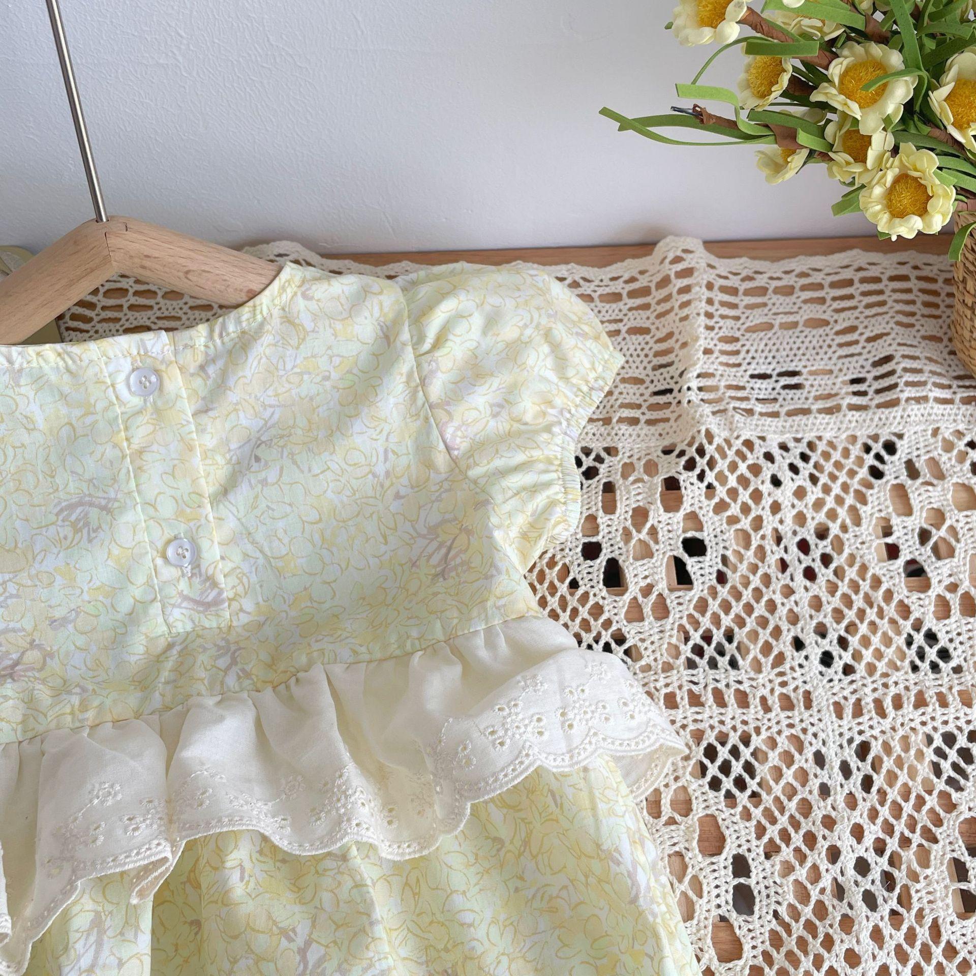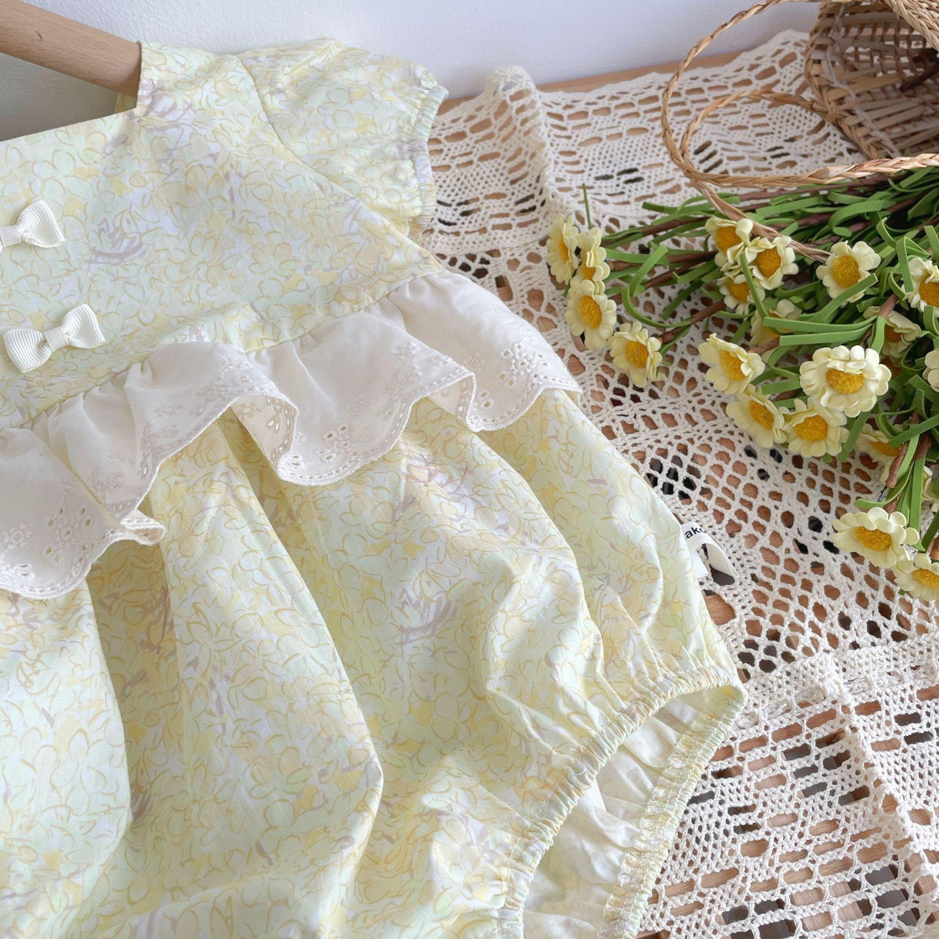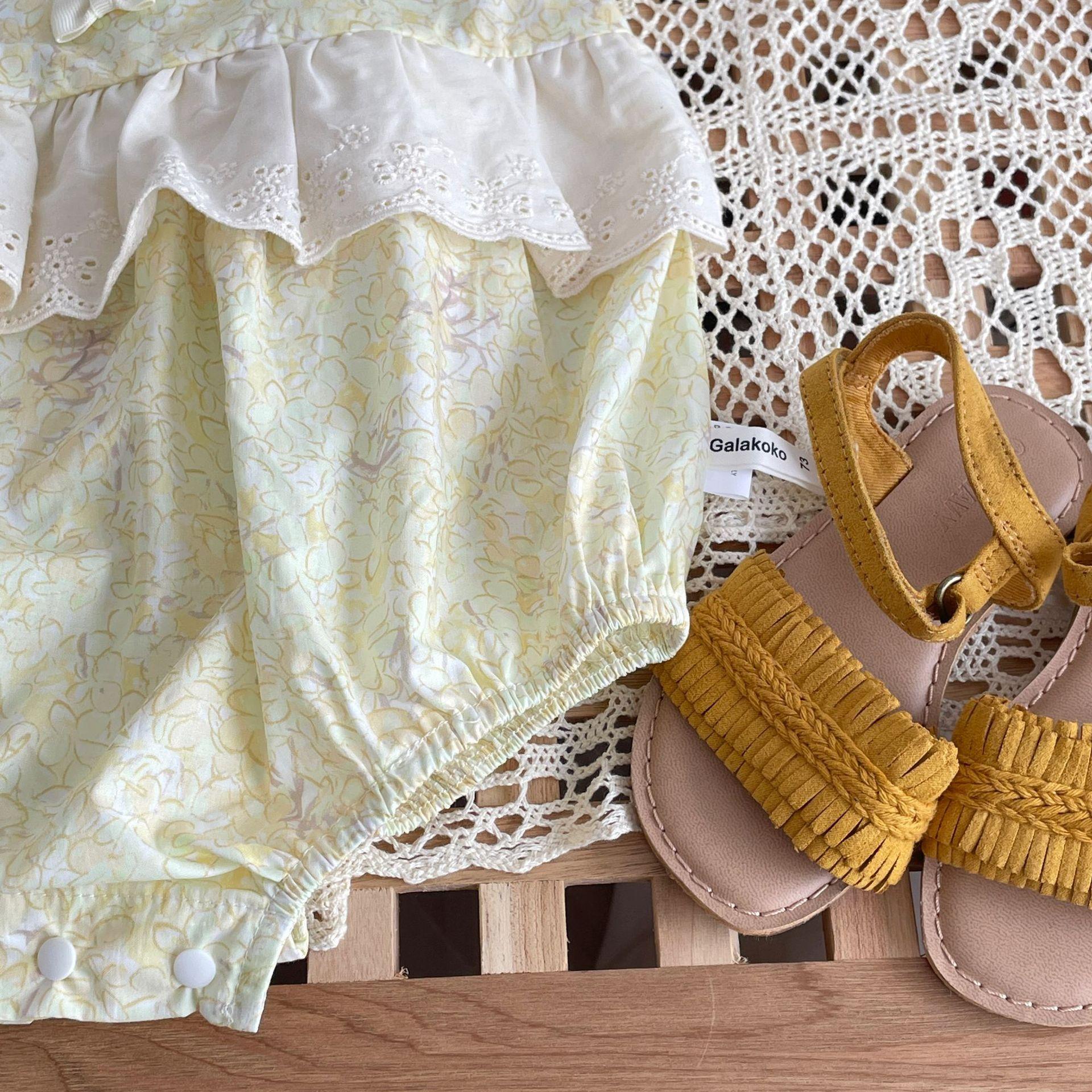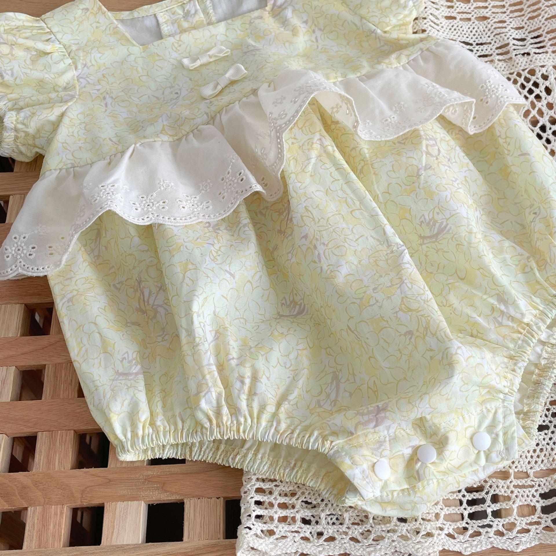 2025 verano nuevo bebé niña bolsa floral pedo ha ropa bebé encaje occidental traje de escalada de una pieza
