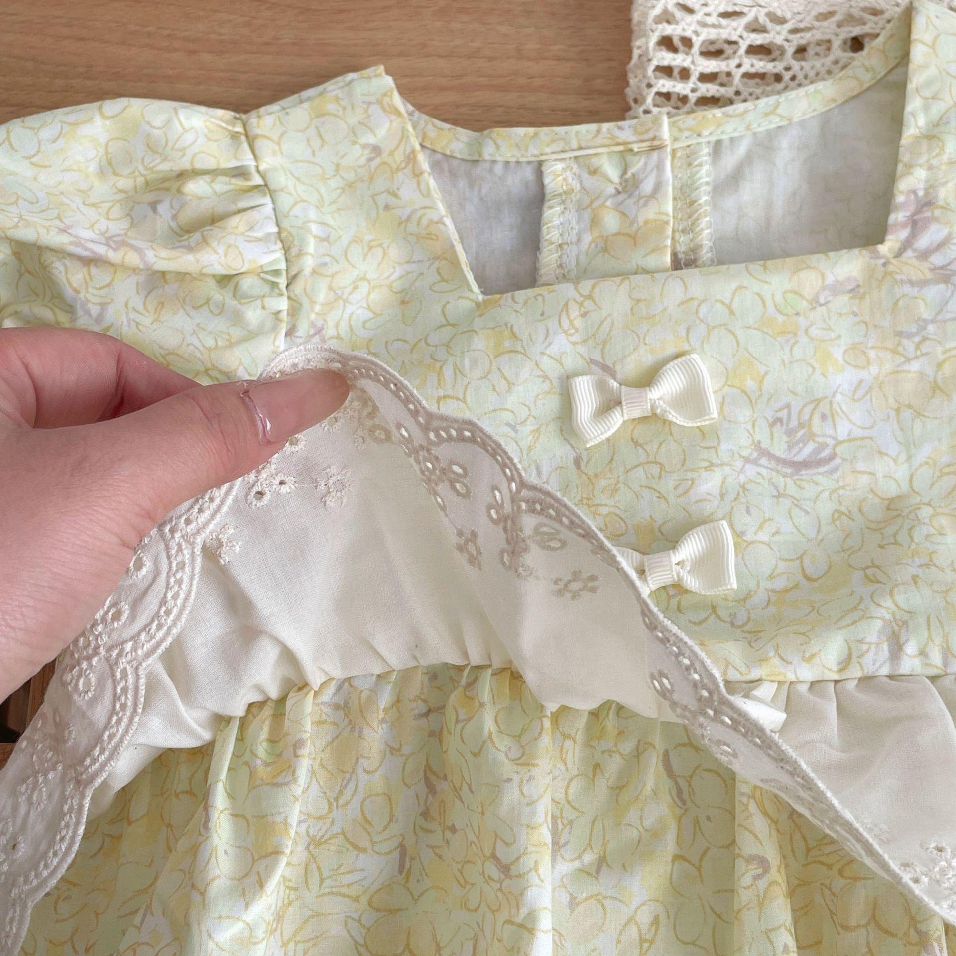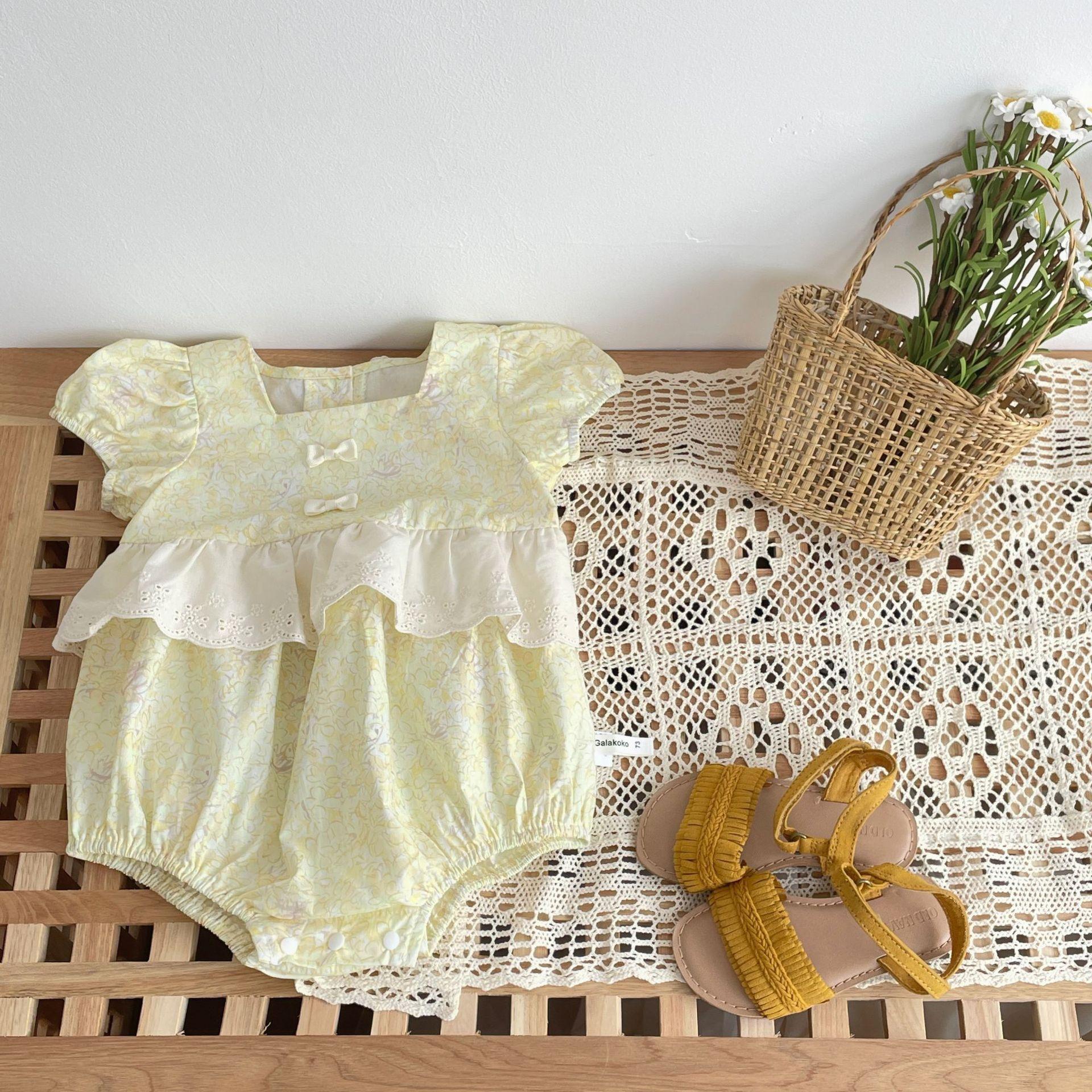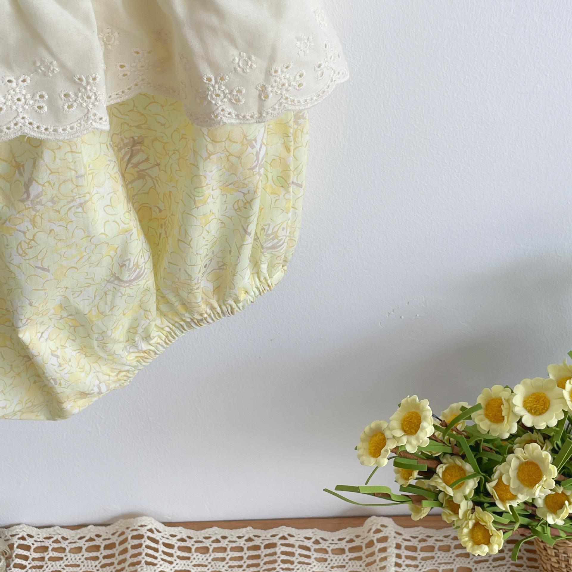 2025 verano nuevo bebé niña bolsa floral pedo ha ropa bebé encaje occidental traje de escalada de una pieza