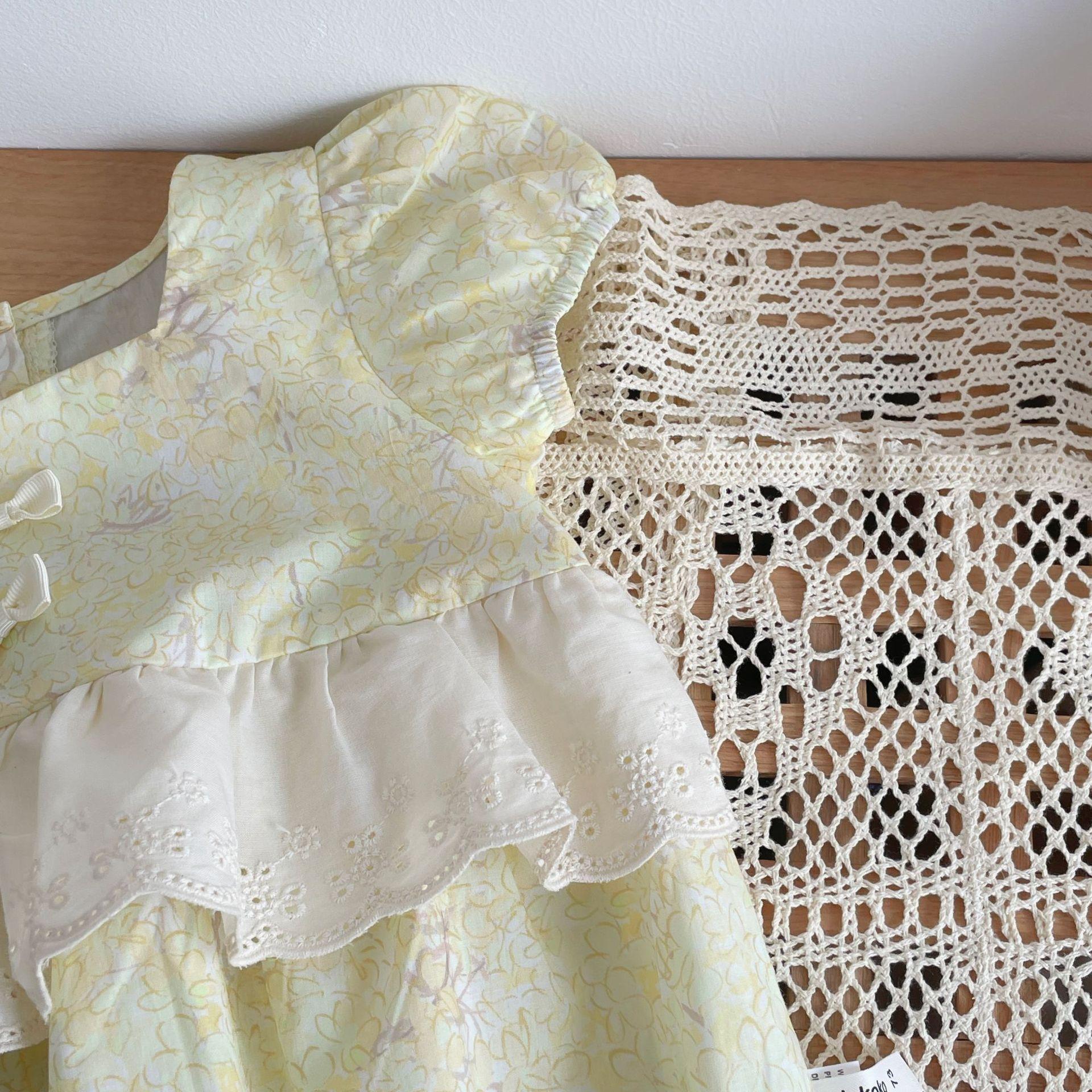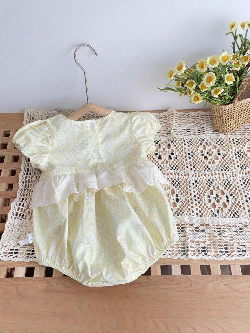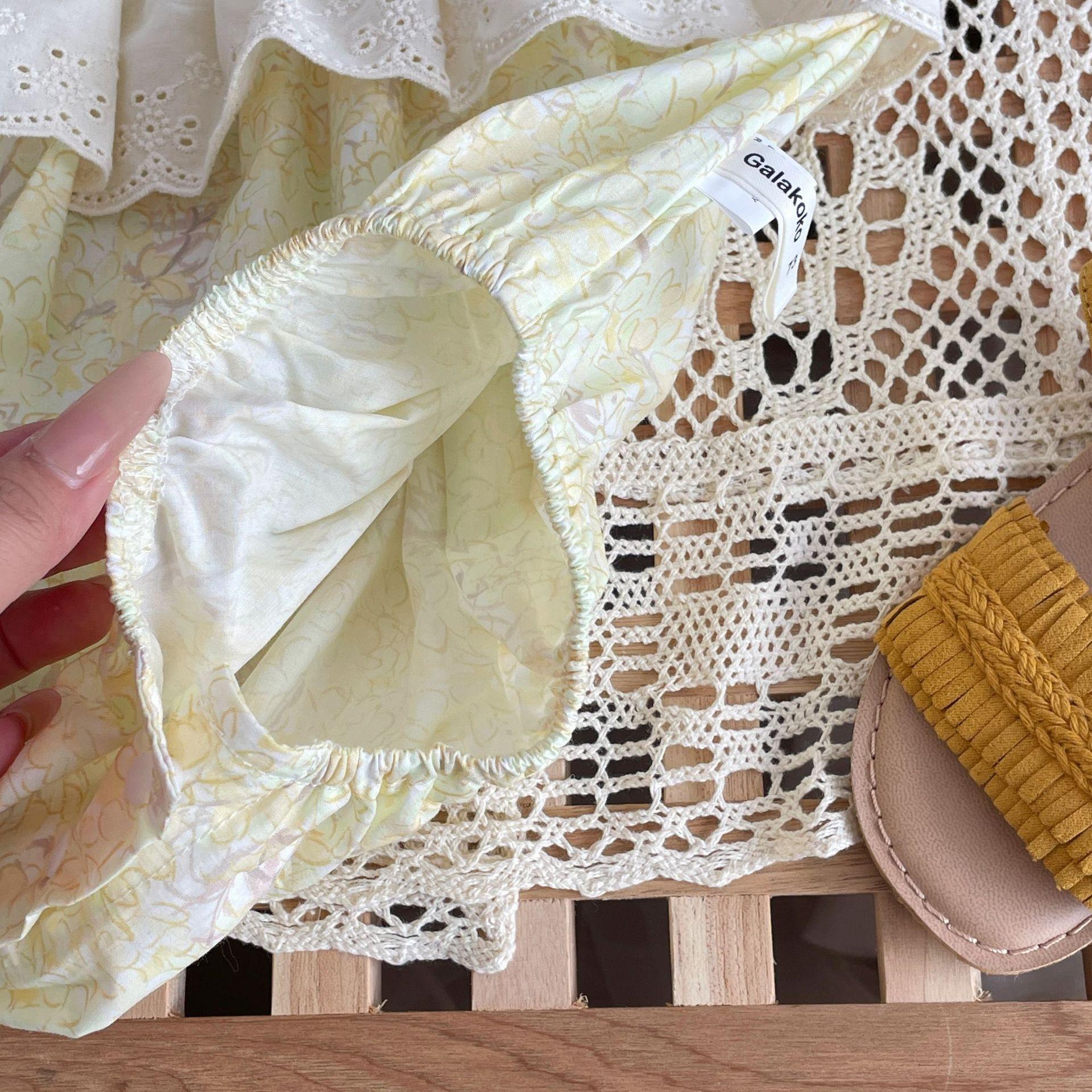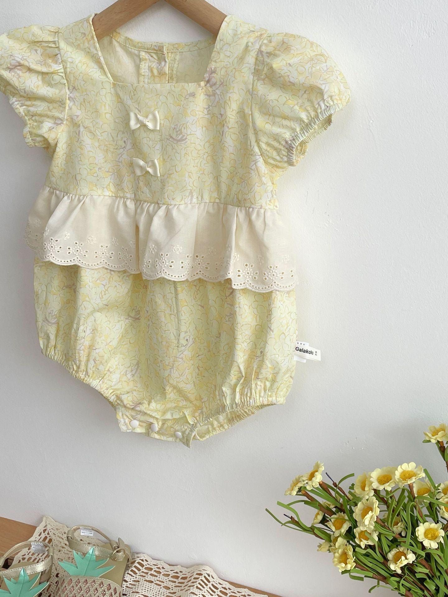 2025 verano nuevo bebé niña bolsa floral pedo ha ropa bebé encaje occidental traje de escalada de una pieza
