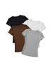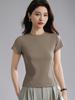 Camiseta de verano de manga corta con hombros descubiertos para mujer, ajustada, estilo coreano, con cuello redondo y base interior.