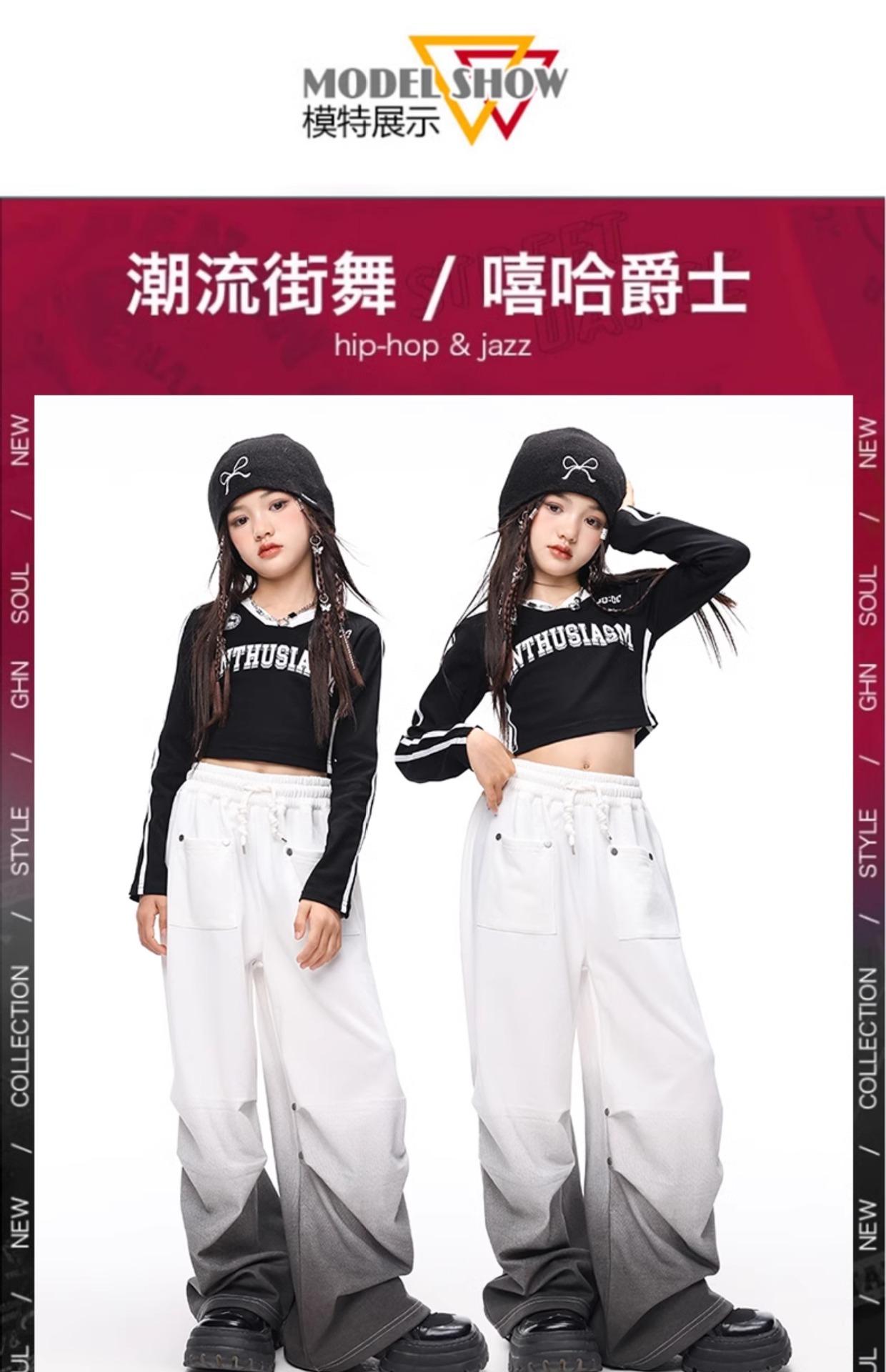 Traje de baile de jazz para niñas, marca de moda de hip-hop, ropa de baile callejero para niños, ropa de moda para niñas, traje de actuación de hip-hop