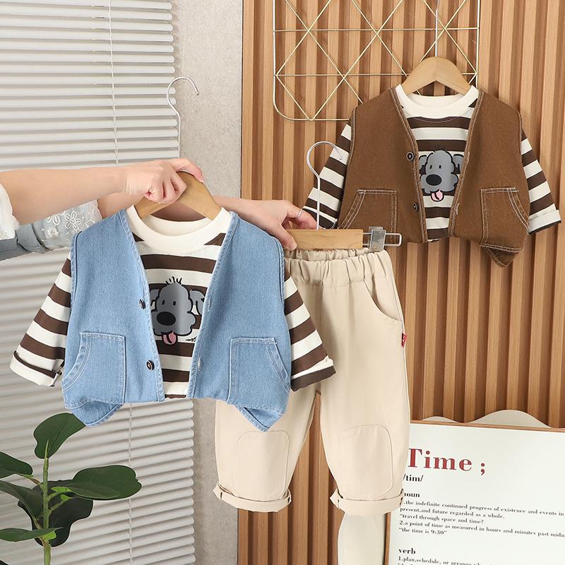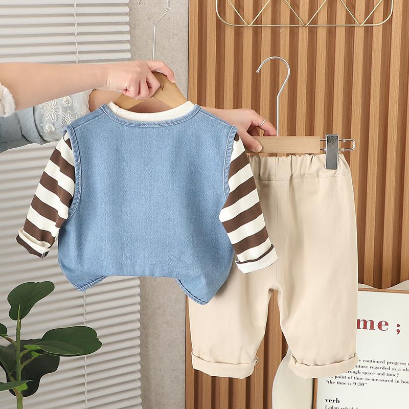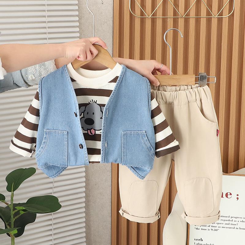 Compra Traje de Primavera y Otoño para Niños 2025 Primavera Nuevo Camiseta Chaleco Tres piezas Bebé Manga Larga 1-5 Años Ropa para Niños al por mayor en Joom.pro