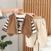 Traje de Primavera y Otoño para Niños 2025 Primavera Nuevo Camiseta Chaleco Tres piezas Bebé Manga Larga 1-5 Años Ropa para Niños