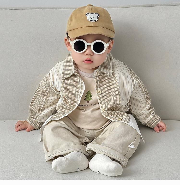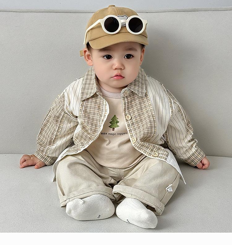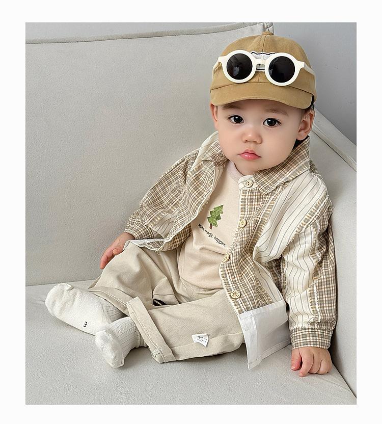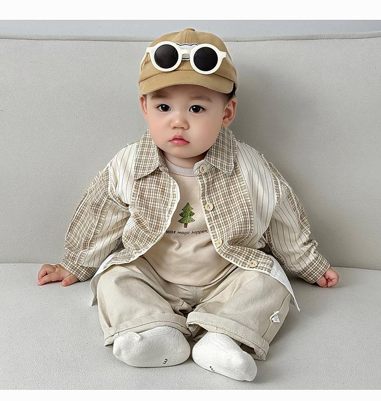 Ropa Infantil Estilo Coreano Traje para Niño Primavera Nueva Llegada Estilo Occidental Cuadros Camisa Casual Otoño Infantil Todo Combinable Pantalones Rectos